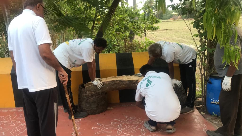 ముందే చెప్పినట్లు వడ్రంగి పని వాళ్ళుగా మారిన ఈ గ్రామ రక్షకులు ఎక్కడ నుండో ఎండు చెట్ల కొమ్మల్ని, కాండాల్ని సేకరించి వాటిని తగిన పరిణామంలో ముక్కలుగా కోసి వీధి సందర్శకులు కూర్చొనదగిన పీటలుగా రూపొందించారు. మళ్ళీ అందులోనూ సాధ్యమైనంత కళాపోషణ కూడా!
