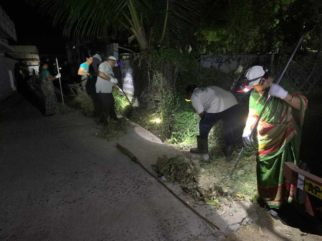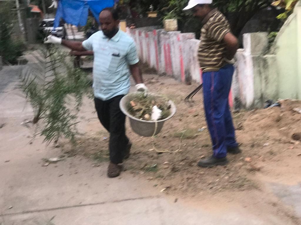 2) 20 మంది కార్యకర్తలు ఆ వీధిని ఊడ్చి, రెండు ఖాళీ స్థలాలను పాక్షికంగా సుందరీకరించే పనిలో మునిగారు. ఒక సందర్భంలో అక్కడి మైకుసెట్ల సరఫరాదారుడు తాత్కాలిక స్వచ్చ కార్యకర్తగా మారి, కత్తి చేత బూని పనిచేశాడు. నిన్నటి, నేటి స్వచ్ఛంద శ్రమదానాన్ని చూసి, చూసి, ఒకామె తటపటాయించి, చివరికి కొంతసేపైనా కార్యకర్తలతో కలిసి పనిచేసింది! (ఈ నివేదిక రాస్తున్న పెద్ద మనిషి కూడ ఒక దశలో ఆవేశపడి, వంగి, పారతో పనిచేయడం గూడ జరిగిపోయింది!)