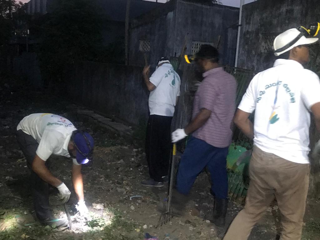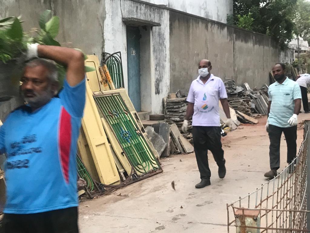 - నూనె మిల్లు వెనుక వీధిలో కూల్చేసిన ఇంటి సామాన్లూ, పాత కారూ అడ్డు నిలిచి, ట్రాక్టరు ప్రవేశించలేనందున, రెండు వీధుల్లో ఊడ్చిన, పీకిన, ప్రోగేసిన వ్యర్థాలను డిప్పల కెత్తి దూరంగా నిలిపిన ట్రాక్టరులో నింపడం.