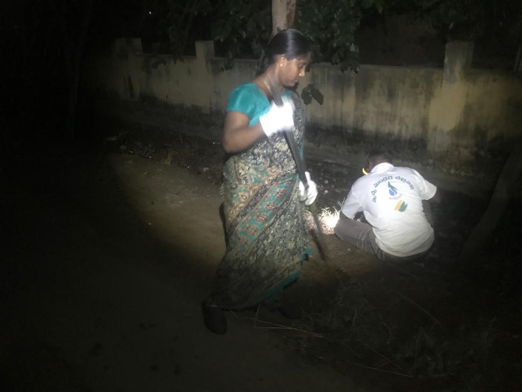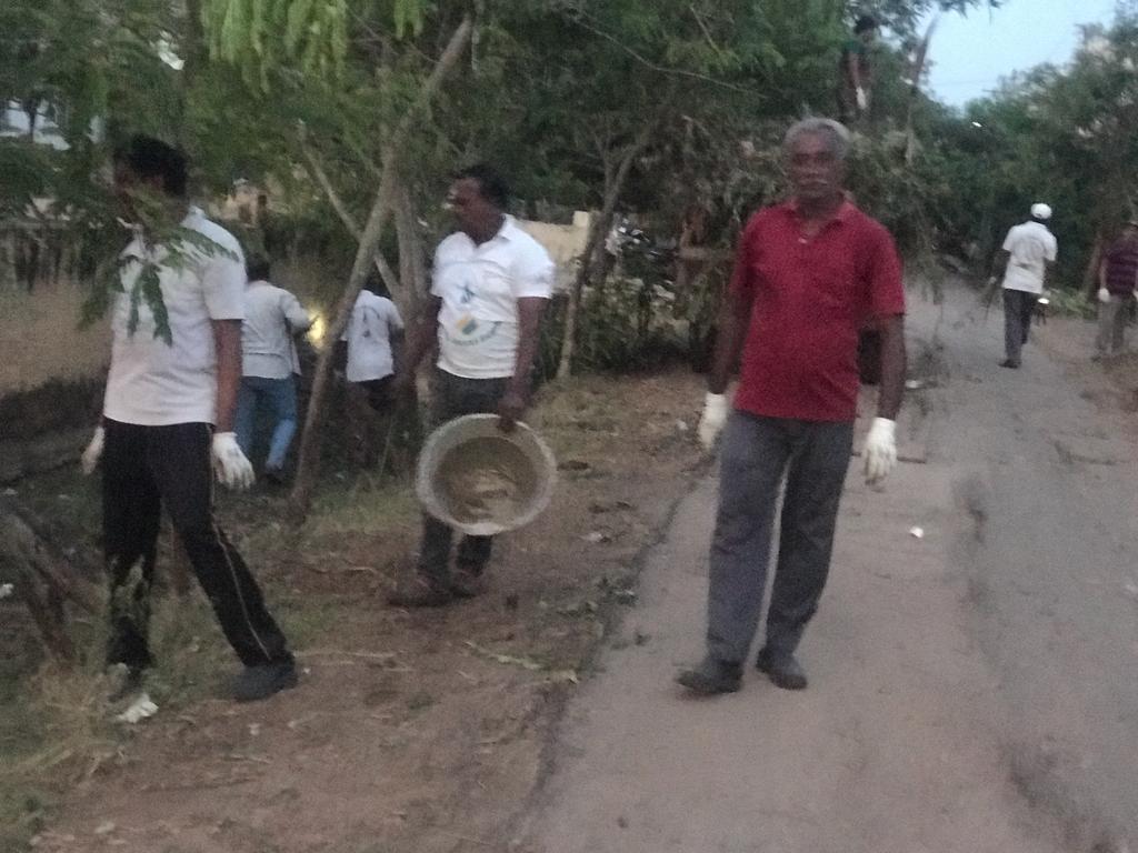 1) మూడు మురుగు కాల్వల్లో దిగి 12 మంది కార్యకర్తలు పుల్లా – పుడకా – ఎండాకుల - మద్యం, తదితర ప్లాస్టిక్ - గాజు సీసాల్ని ఎక్కడికక్కడ సమీకరించి, వింగడించి, డిప్పల్లో కెత్తి, ట్రాక్టర్ లో నింపడమూ,