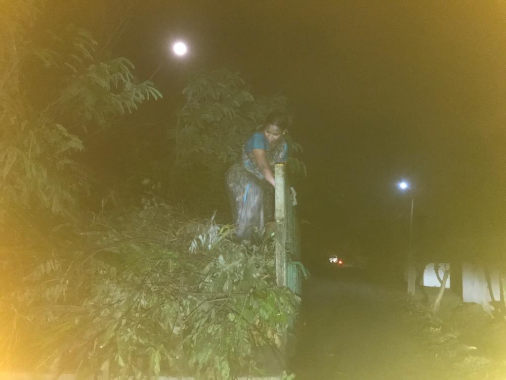 2) ఇక అంతకన్నా పెద్ద విశేషం – ఒక రకంగా సాహసం – ‘పిట్ట కొంచెమూ కూత ఘనమూ’ అన్నట్లు - ఆస్పత్రి నర్సు అమాంతం ట్రాక్టర్ పైకెక్కి, అంతమంది అందిస్తున్న చెత్త డిప్పల్ని, చెట్ల కొమ్మల్ని లాఘవంగా అందుకొని, ట్రక్కులో త్రొక్కి, క్రుక్కి సర్దడమే!