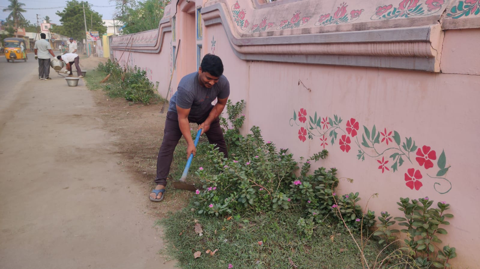 నేటి శ్రమదానంతో శుభ్ర పడిన గోడలు కాక, రోడ్డెక్కిన ఇసుక దిబ్బల్ని సర్దింది కాక, రహదారి మార్జిన్ల పిచ్చి-ముళ్ల మొక్కల తొలగింపు కాక, పింగళి డాక్టర్ల ఆస్పత్రి నుండి భారత లక్ష్మి ధాన్యం మర వీధి దాక చూడ చక్కగా మారింది కాక - మరి రెండు విశేషాలేమనగా: