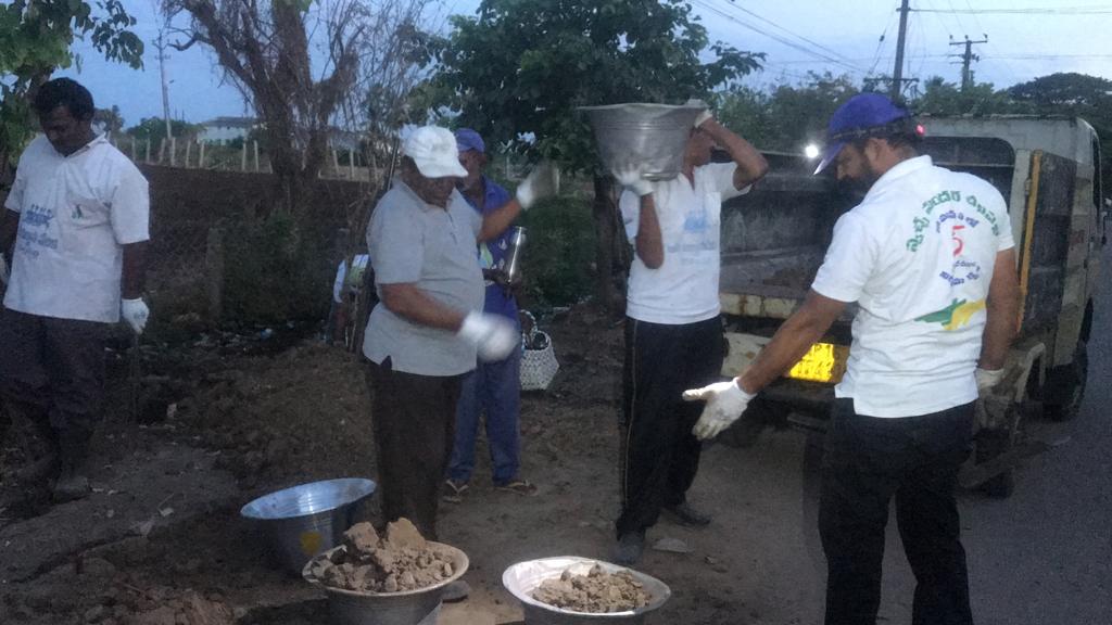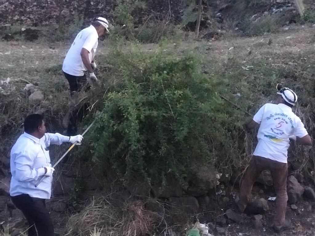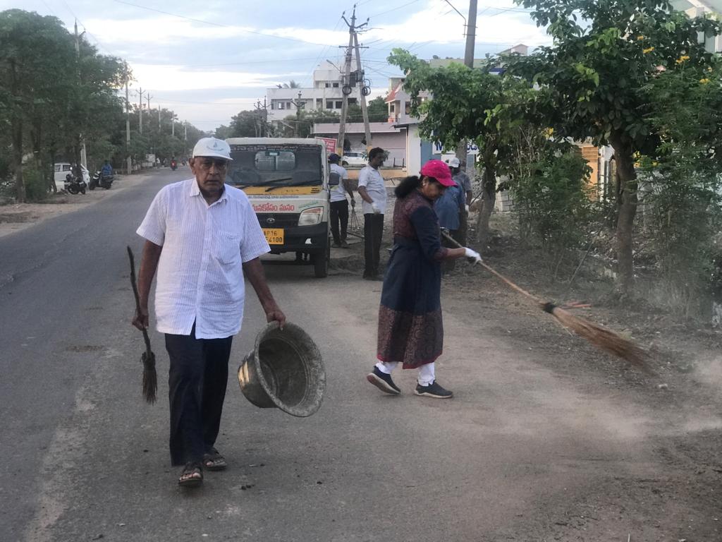 5.40 తర్వాత బాటకు పడమర డ్రైనులో 15 మంది కార్యకర్తలదే శ్రమంటే! పుల్లా పుడకా, ఎండుటాకులు, త్రాగేసిన కొబ్బరి బొండాలు, బాట సారులు విసిరిన ప్లాస్టిక్ ముదనష్టాలు, ఇప్పటికిప్పుడు కత్తుల వారు నరికిన కొమ్మ రెమ్మలు, ముళ్లమండలు, రాళ్ళు - రప్పలు ..... ఒకటేమిటి .. ఆ 60 – 70 గజాల డ్రైనే సకల కశ్మల అరిష్టాలకు ఆటపట్టు! కాని 30 – 40 నిముషాల కార్యకర్తల, సుందరీకర్తల శ్రమ ధాటికి – 6.00 తరువాత మళ్లీ అదే డ్రైను చూడచక్కనిది!