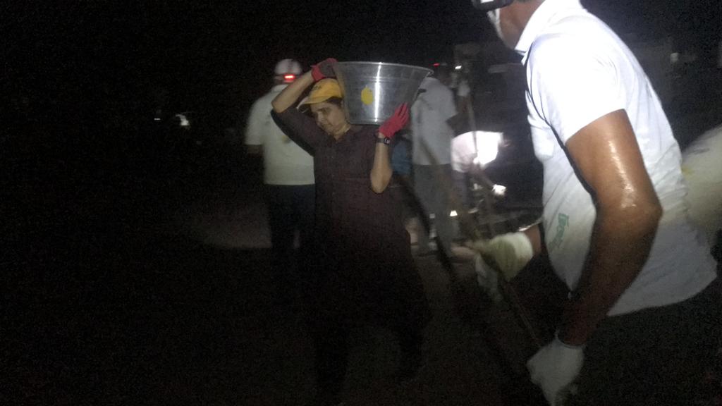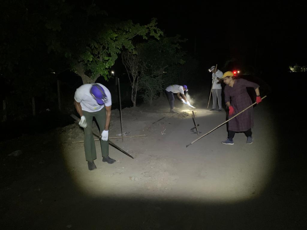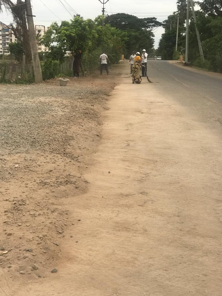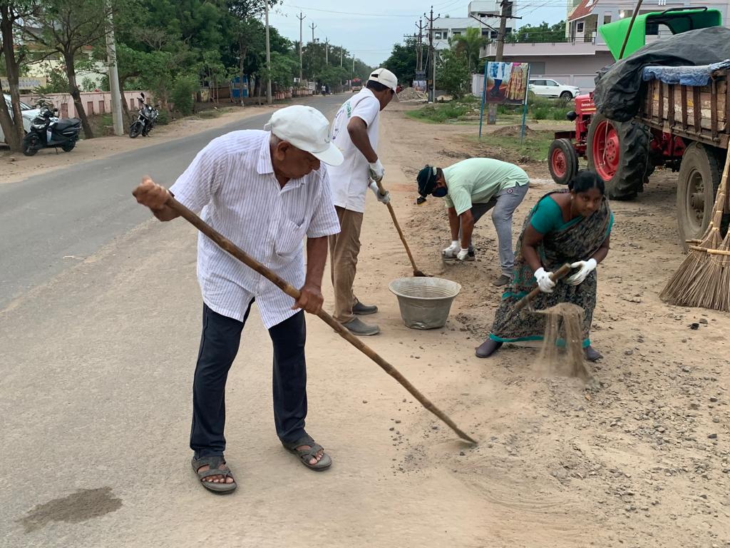 4) ఇక ఇద్దరు నర్సులున్నారు చీపుళ్లతో రహదారిని, మార్జిన్లను ఊడ్చి, ఇసుక లేని, దుమ్ము లేని, కాలుష్యరహితమైన బాటను సిద్ధం చేశారు!