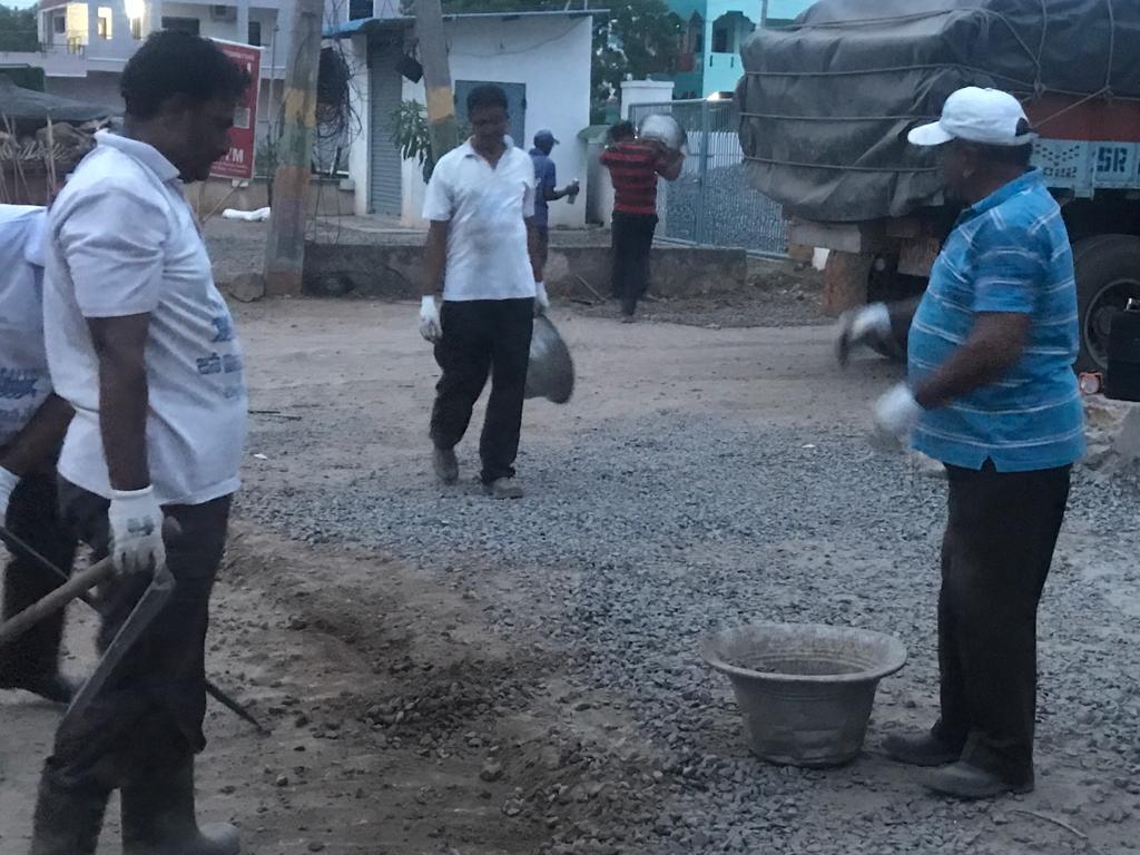 1) అక్కడొక సిమెంటు/ ఇనుము గోడౌను! మరియు రాతి ఇసుక మిశ్రం! అది కాస్తా ఇటీవలి వానలకు రెండు గజాల వెడల్పున, 2530 అడుగుల బారున నాలుగైదు అంగుళాల మందాన గట్టిగా అంటుకుపోయింది! రోడ్డు నుండి సదరు మిశ్రాన్ని ఊడ గొట్టేందుకు 15 మంది కార్యకర్తలు గోకుడు పారల్తో, గునపాలతో, పారలు, రైల్వే పారల్తో గంటకు పైగా పోరాడవలసి వచ్చింది!