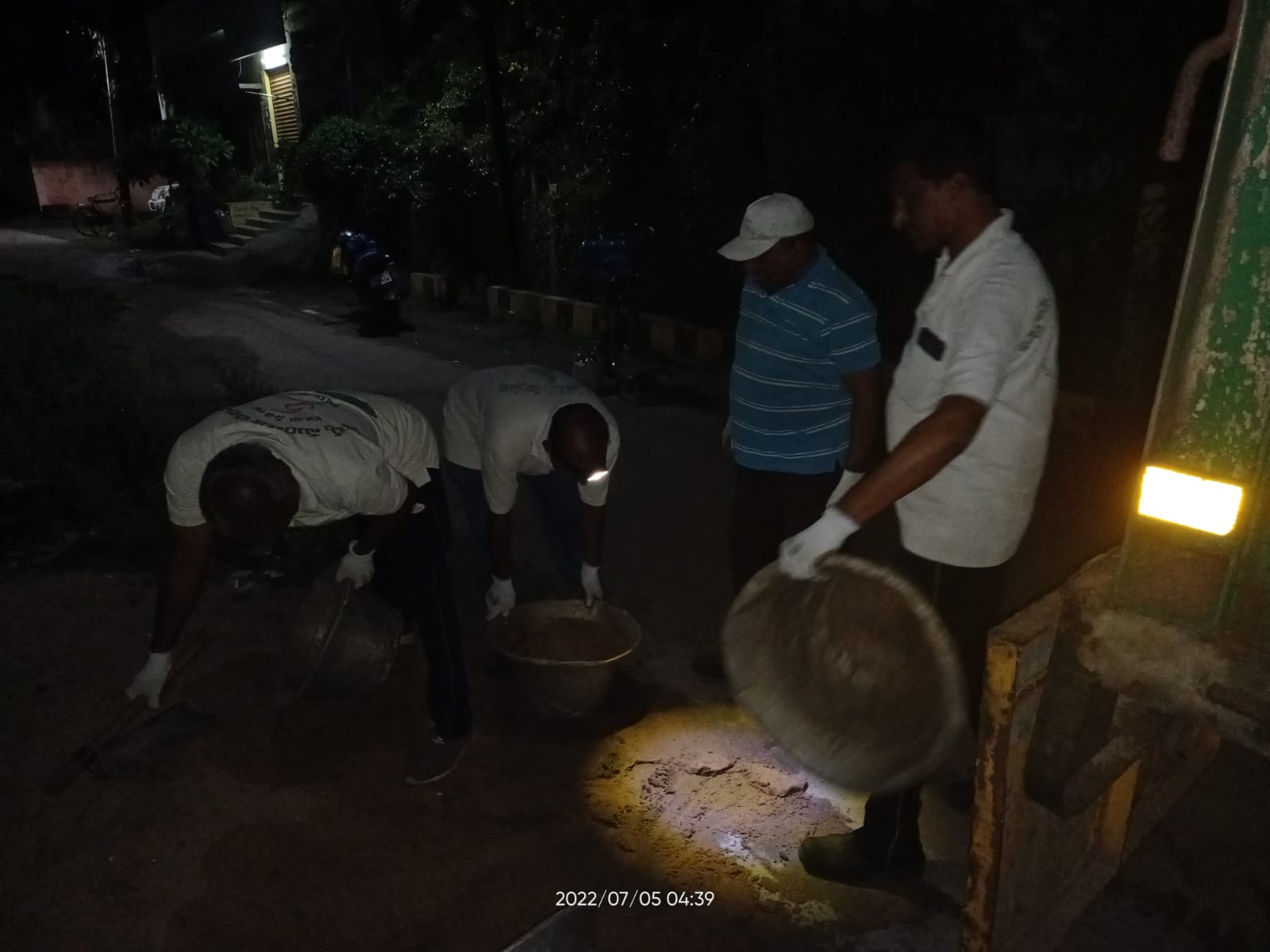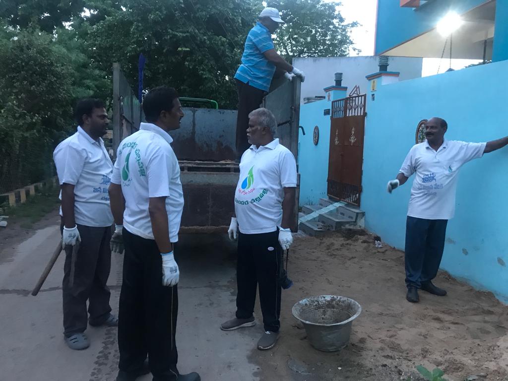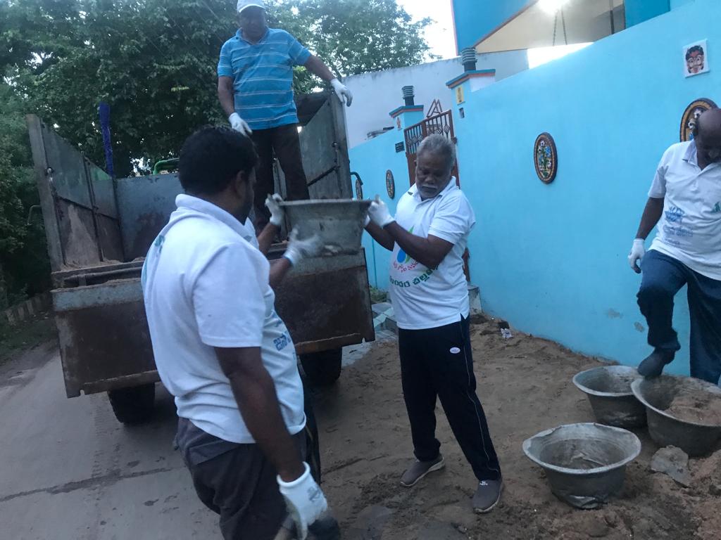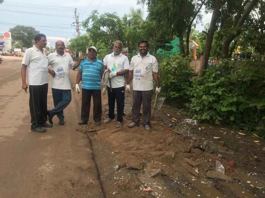 అంచేతనే నేటి ఐదారుగురు కార్యకర్తలు గంటన్నరకు పైగా శ్రమించారు; శ్రీమంతు క్లబ్బు ప్రక్క రోడ్డు లో సిమెంటు స్తంభాలు పాతడానికి కావలసిన ఇసుకను, స్తంభాలనూ అక్కడికి చేర్చి, సిద్ధం చేశారు;