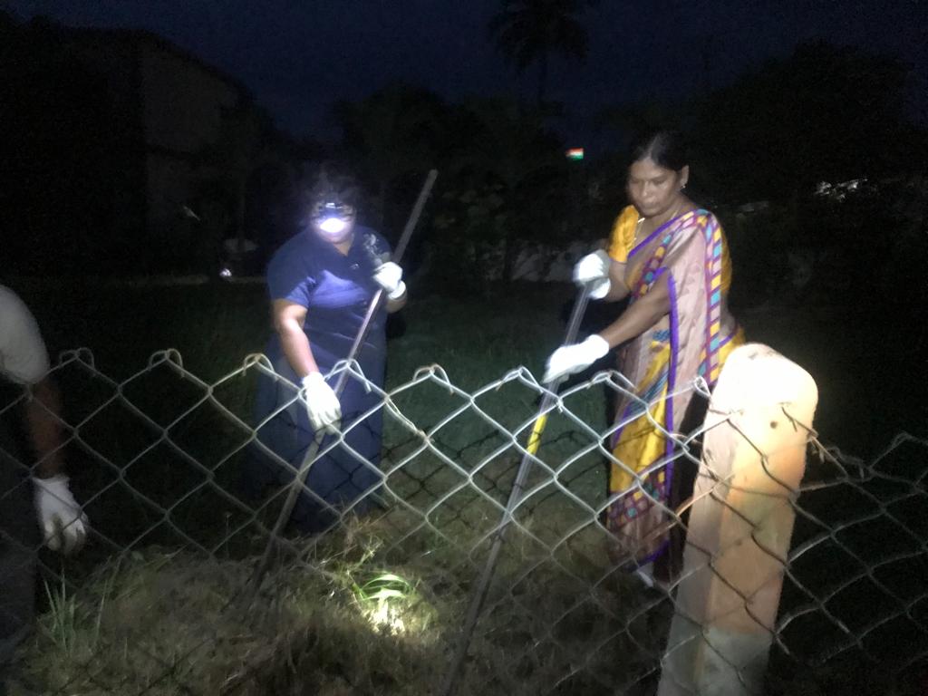 ఇక కొందరు కార్యకర్తలైతే, స్మృతి వనం నడవాకు రెండు ప్రక్కల ఉన్న కంచె తీగల కల్లుకొన్న - ఎండిన పిచ్చి తీగల్ని సైతం తొలగిస్తూ - ఏపుగా పెరిగే గడ్డిని పెరుకుతూ శ్రమించడం గమనించండి!
