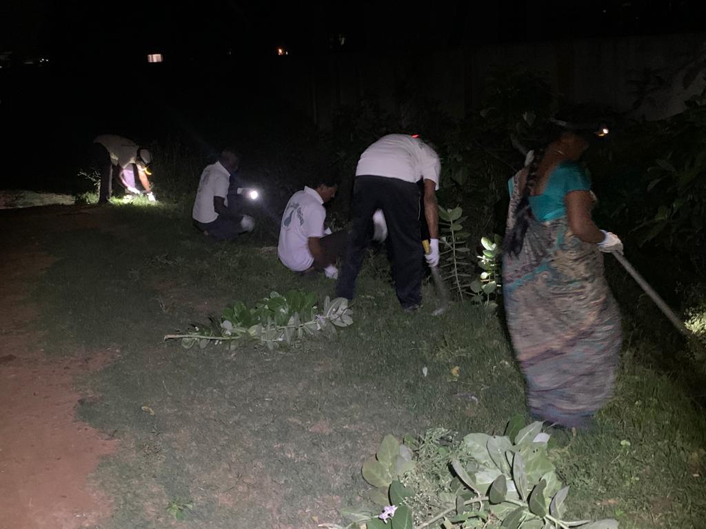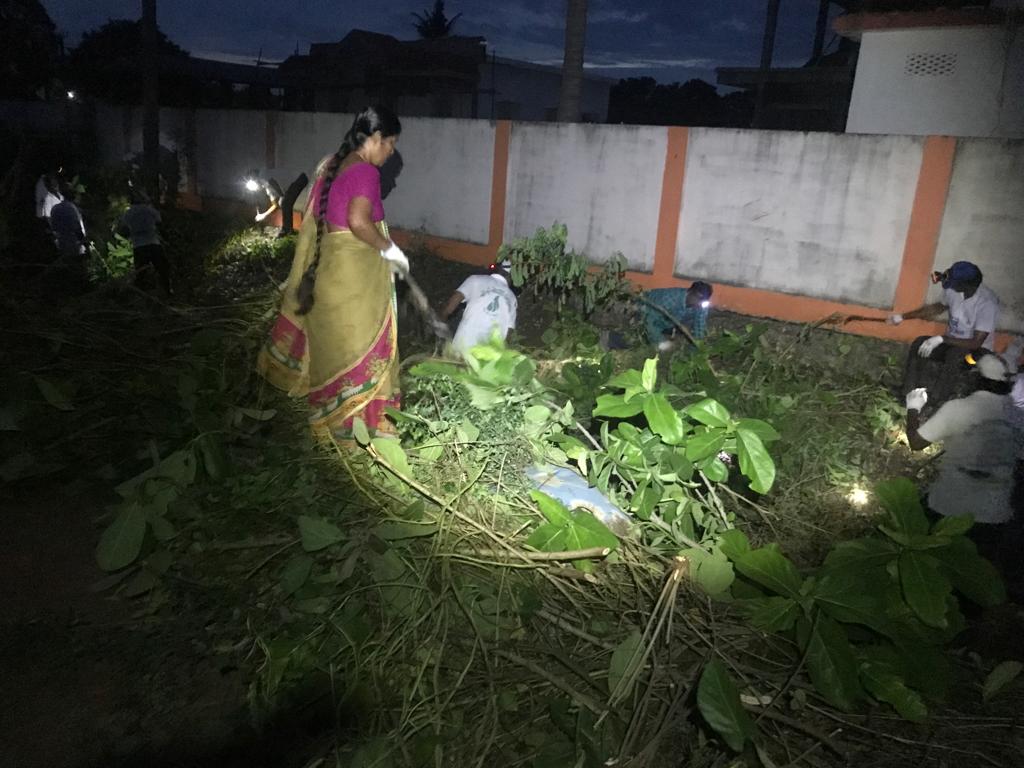 35 మంది గుంపులో ఎనిమిదేళ్ల దుబాయి బాలుడు మొదలు 84 ఏళ్ల బాల వృద్ధుడు దాక ఎవరికి తోచిన ప్రయత్నం వాళ్ళు చేశారు. తీరా – 6.00 సమయానికి ఇందరు ఏరిన, నరికిన, ఊడ్చిన, దంతెలతో రోడ్డు పైకి లాగి పోగేసిన తుక్కులన్నీ కలిపి రెండు ట్రాక్టర్లకు సరిపడా లెక్క తేలింది. ఐతే ఒకళ్ళకిద్దరు లోడింగ్ నిపుణులు ట్రక్కులో నిలిచి, సర్దుతూ అణగ త్రొక్కుతూ నలుగురందించిన చెత్తను ఒక్క ట్రక్కుకే పరిమితం చేశారు.