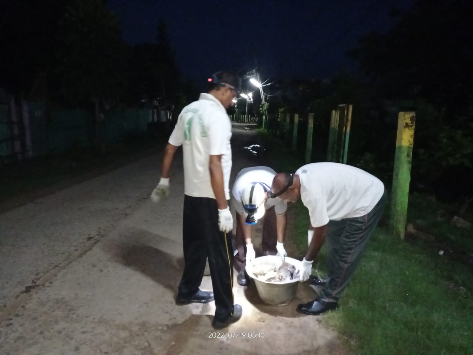 అసలీ రోడ్ల రక్షక కార్యకర్తలు ఈ దారి గుంటల పని గతవారమే చేయవలసి ఉండెను గానీ, ప్రకృతి సహకారం దొరకక - వాన ముసురు వల్ల నేటికి వాయిదా పడ్డది! రహదారి ఉద్యానాల స్తంభాల కాంక్రీటును చాల కష్టపడి స్వచ్ఛ కార్యకర్తలు, రెస్క్యూ దళమూ, ట్రస్టు కార్మిక మిత్రులూ పగల గొట్టి ఈ గుంటల కోసమే అక్కడ ఉంచుకొనగా - ఏ గ్రామస్తులోగాని - ఈ వాయిదాను సద్వినియోగించారు - తమ సొంత అవసరాల కోసం ఆ రద్దును వాడేశారు! (వాళ్ళ చురుకుదనాన్నీ, చొరవనూ అభినందించక చేసేదేముంది?)