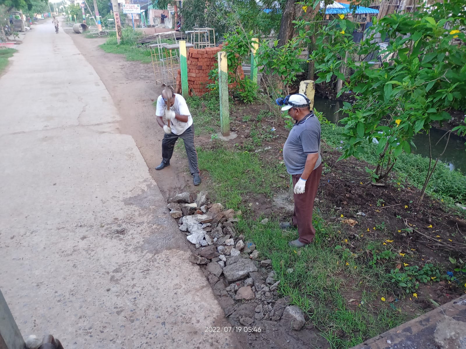 మంగళవారం (19-7-22) నాటి ఉషః సమయపు పని దినం సంఖ్య 2486* ఐతే - పనికొచ్చే రోడ్ల మరమ్మత్తు పనులకు పూనుకొన్న కార్యకర్తలు ఆరుగురు. వారి శ్రమను గంటన్నర పాటు పొంది - కాస్త మెరుగుపడినది - సాగర్ టాకీస్ బైపాస్ వీధి! వారి కఠిన, కృషిని చూస్తూ, వేలు పెట్టక దాటిపోయిన గ్రామస్తులు డజన్ల మంది! తమ ఇళ్ల ఎదుటే - తమందరి కోసమే జరుగుతున్న ప్రయత్నంలో - మోహమాటానికైనా సహకరించిన అక్కడి గృహస్తులు సున్నా మంది!