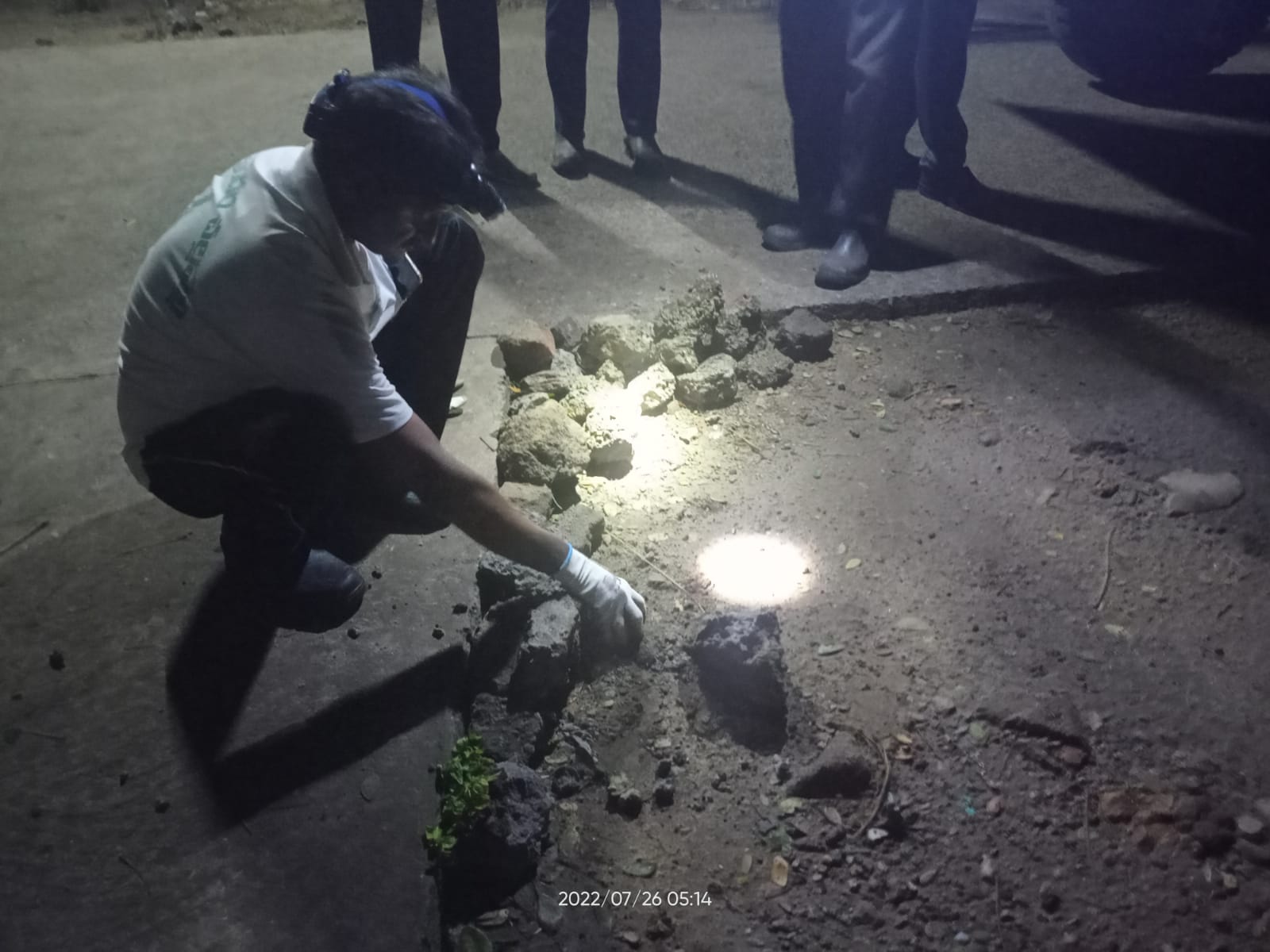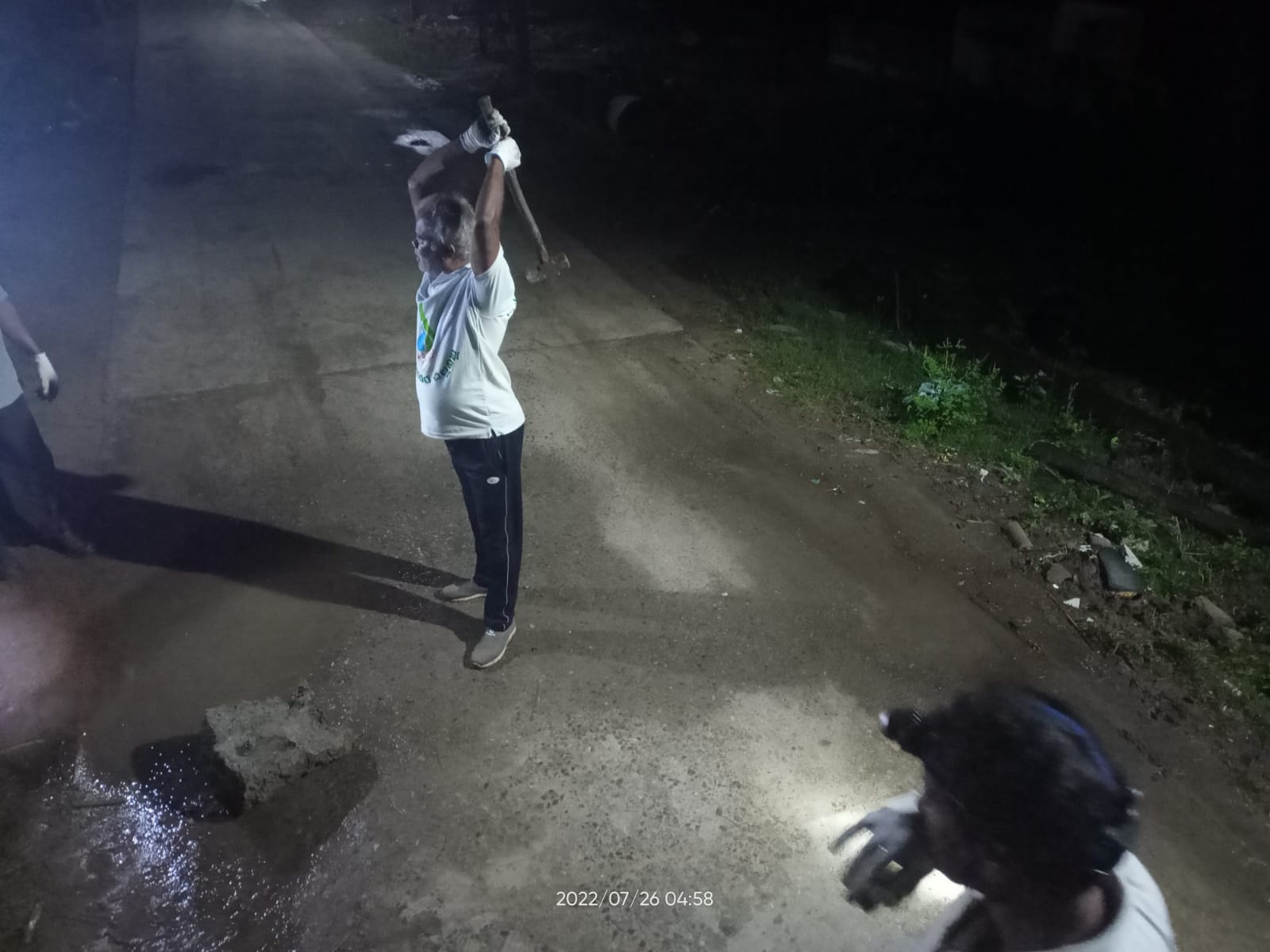 - దాన్ని ట్రక్కులో కెక్కించి, పాత కస్తూర్భాయి ప్రభుత్వాసుపత్రి దగ్గర పడిన రోడ్డు మార్జిన్ గుంటను పూడ్చడం;