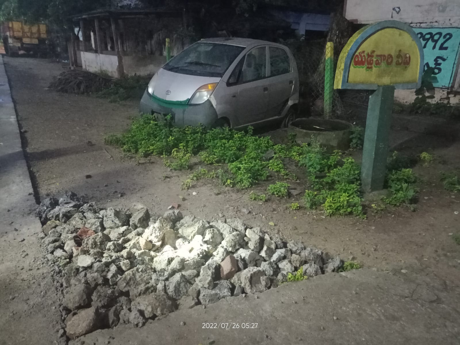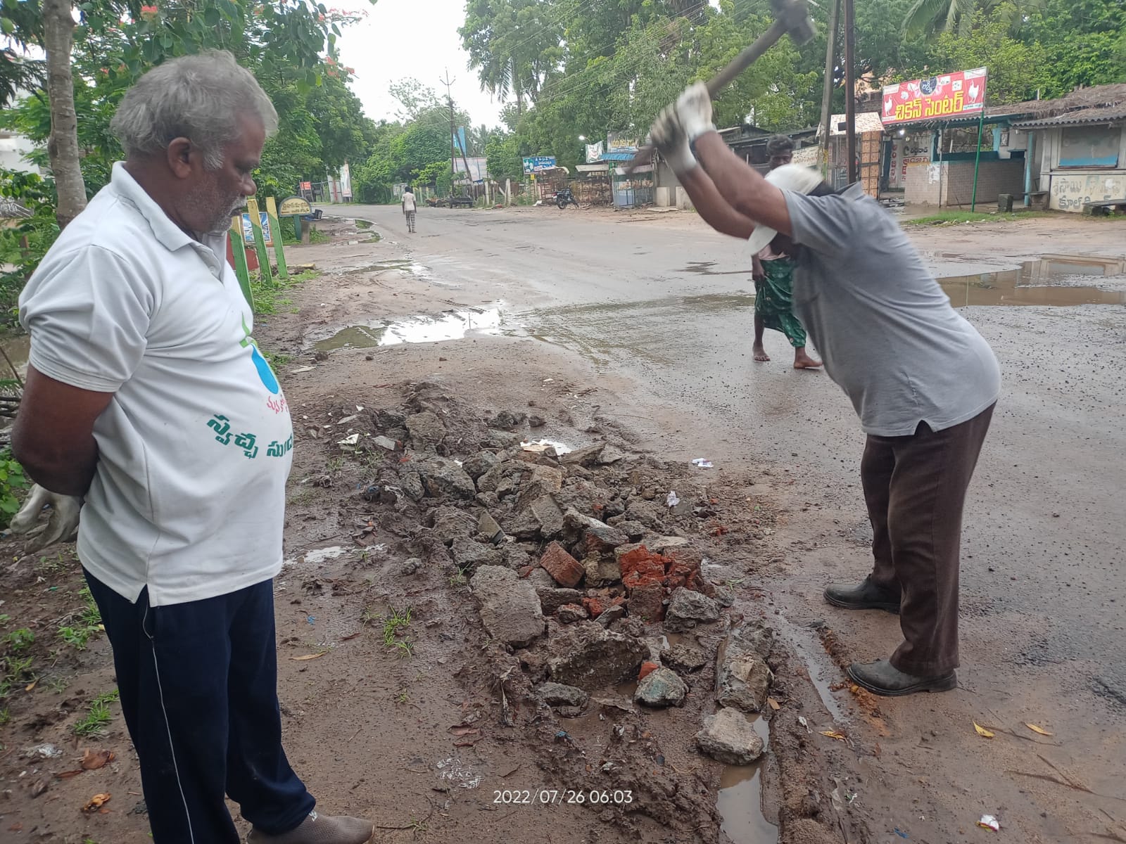 - మండల కార్యాలయం ఎదుట వర్షాలకు పడిన మరొక పెద్ద పల్లాన్ని కూడ పూడ్చి, సరిజేయడం.....