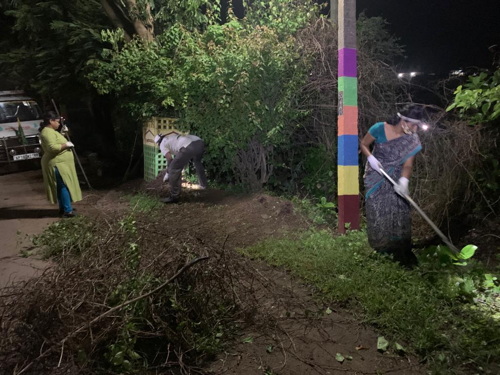 - ఈ వేకువ కూడ ఏడెనిమిది మంది ధృఢ మనస్కులు మురుగు కాల్వలో దిగి, ఎండు - పచ్చి కొమ్మల్నీ, పిచ్చి - ముళ్ళ మొక్కల్నీ - దురద జాతి మొక్కల్తో సహా తొలగించి, బైటకు లాగారు గాని, డంపింగ్ యార్డుకు చేర్చలేదు. ముఖ్యంగా ఎండు మొద్దుల్నీ , పుల్లల్నీ నారాయణరావు నగర్ నివాసులెవరో గాని వంట చెరకు పనికై పట్టు కెళ్ళారు!