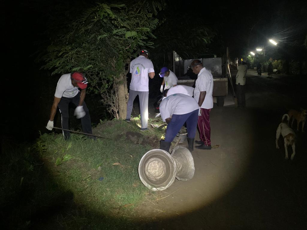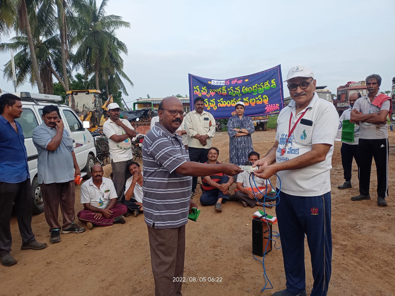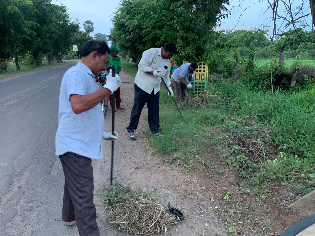 బెజవాడ రోడ్డులో – చిల్లలవాగు వంతెన దగ్గర్లో - లారీల కాటా దగ్గర ఆగిన స్వచ్చ కార్యకర్తలు అక్కడి నుండి వెనుకకూ – ముందుకూ, ఎక్కడ అవసరం తమను ఆహ్వానిస్తే అక్కడ కాలుష్య సాంద్రతని బట్టి ఐదుగురో - ఆరుగురో వెళ్లడమూ, వెళ్ళిన ప్రతిచోటా తమ ముద్ర వేసి, పరిశుభ్ర – సౌందర్యాలు మప్పడమూ - ఇదే నేటి పాతిక మంది శ్రమదాతల ఘనత!