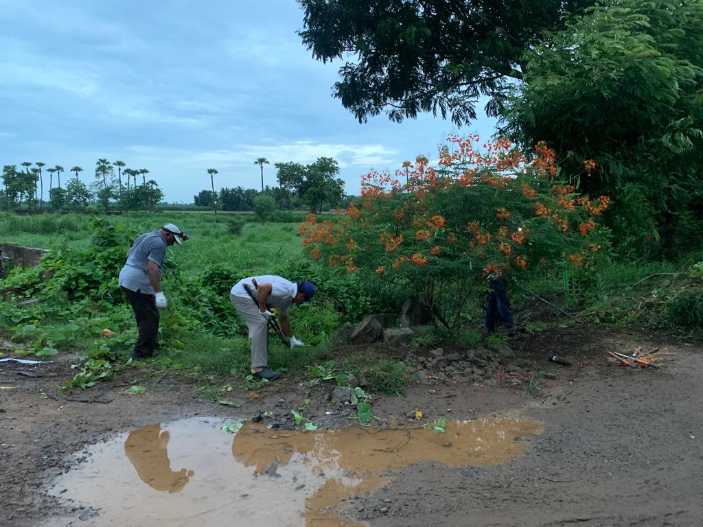 ఈ కొద్ది మంది కార్యకర్తలే 3-4 చోట్ల ఏక కాలంలో 1 ) డ్రైను నుండి ఏమేమి బైటకు లాగారో 2) చెట్ల నెలా సుందరీకరించారో 3) కాటాల పిట్ట గోడల ప్రక్క పడి ఉన్న మోపుల కొద్దీ వ్యర్థాల నెంత కష్టపడి ట్రాక్టరులోకి చేర్చారో 4) నీళ్ల గుంటల్నేమాత్రం పూడ్చారో – 5) అన్నిటి కన్నా మరీ ముఖ్యంగా 2 పెద్ద ఎర్ర గోతాల నిండా వాడేసిన సిరంజీలను ఇద్దరు ఎంత భారంగా మోసుకు పోతున్నారో గమనించి నేను వ్రాసేవి యదార్థాలని ఒప్పుకోగలరు!