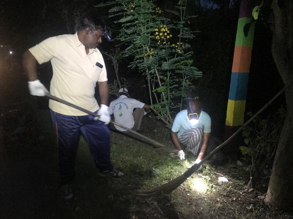 గురువారం చీకటి వేళ – ఆటోనగర్ సమీసాన - బెజవాడ బాటలోనే స్వచ్చ – సుందరీకరణ జరిగింది. జరిపిన వారు 24 మంది! ఎవరెవరు విరజిమ్మిన కశ్మలాలు గానీ, ఏరిన – ఊడ్చినంత మేర దొరికిన రకరకాల చెత్త బండెడు! గంటన్నర పాటు శ్రమదాన సంబంధిత మాటలు - పాటల సందడిని చూస్తూ, పట్టించుకోని వారు వందలమంది!