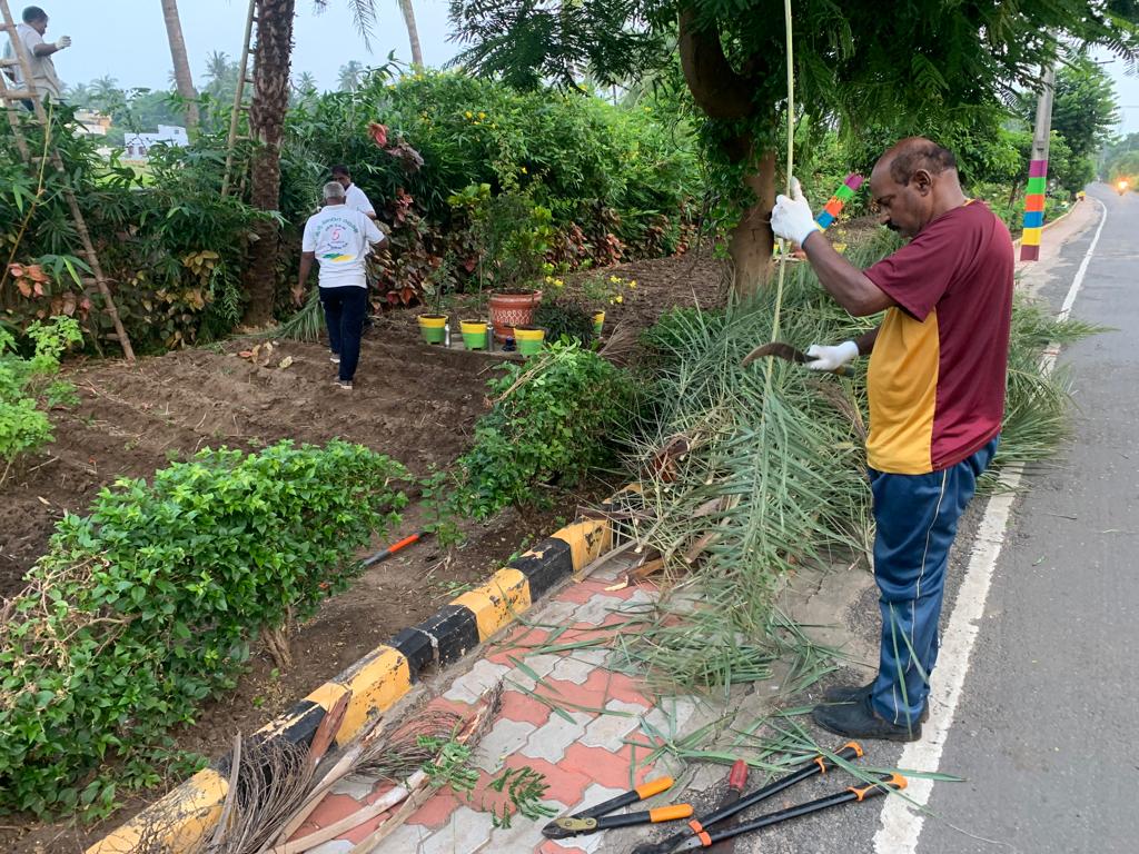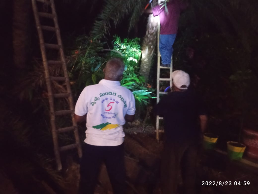 ఔను! ఈ మంగళవారం వేకువ - గంగులవారిపాలెం వీధిలో జరిగిన మార్పు! వారు వీరౌతారు వీరు వారౌతారు...అన్నట్లుగా సావాస దోషం వల్లనేమో గాని, ఐదుగురు రెస్క్యూ టీం కాస్తా - రెండు పొడవైన ఈత చెట్ల సుందరీకరణకు పాల్పడ్డారు!
