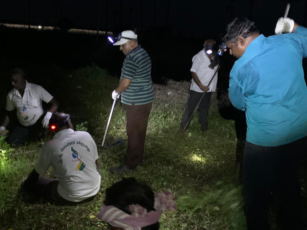 ఈ 45 మందీ తలా 105 నిముషాల పాటు- ఈ చీకట్లో – ఆగి, ఆగుతూ పడుతున్న చినుకుల్లో – ఎగుడుదిగుడు 20 సెంట్ల శ్మశాన స్థలిలో – సగం కాలి మిగిలిన కట్టె ముక్కల నడుమ – ఏ విశిష్ట గ్రామస్తులవో శవాల దిబ్బల వద్ద- కత్తులతో పిచ్చి, ముళ్ల మొక్కలు నరుకుతూ,