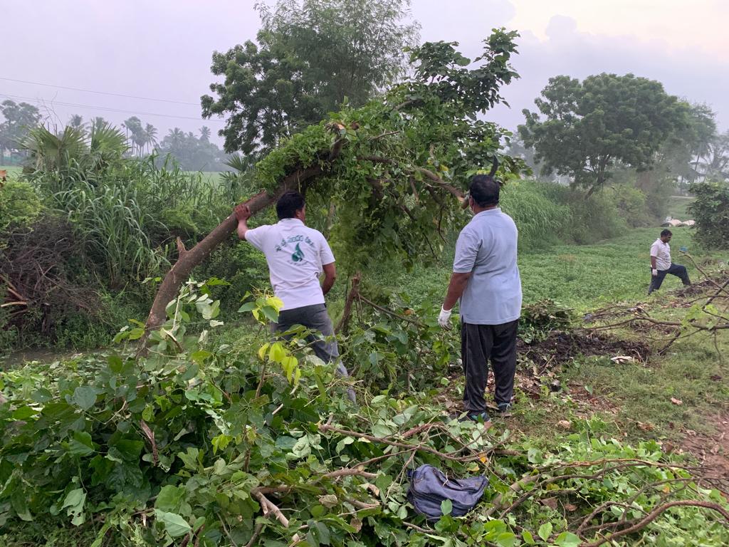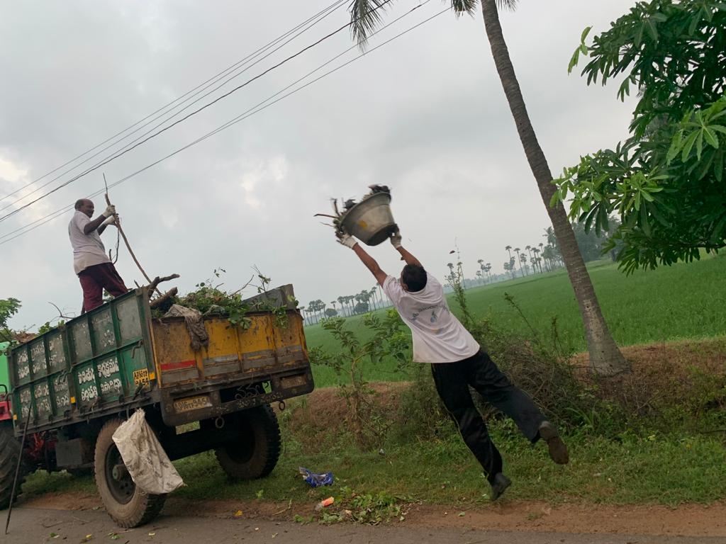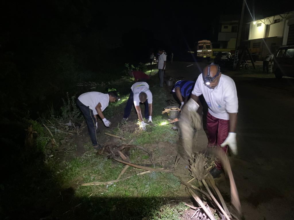 మంగళవారం వేకువ నుండి 4 కి.మీ. దూరం వెళ్లి మరీ ఆ రహదారిని చక్కదిద్దిన వాళ్లు 29 మంది! మరి ఆ రోడ్డుకేం కష్టమొచ్చిందని అడిగితే - చల్లపల్లి వీధులంత అందంగా ఉండమనడం లేదు గాని, చాలా చాలా ఊళ్ళ రోడ్లంత నికృష్టంగా లేదు గాని, దీని మీద కూడ తగుమాత్రంగా ప్లాస్టిక్ గ్లాసులు, సీసాలు, ప్లేటులు ఉన్నాయి. మార్జిన్లలో పిచ్చి – ముళ్ల మొక్కలూ, తీగలూ సరేసరి!