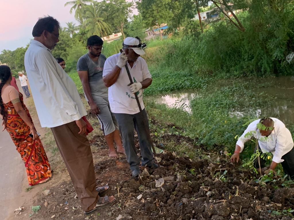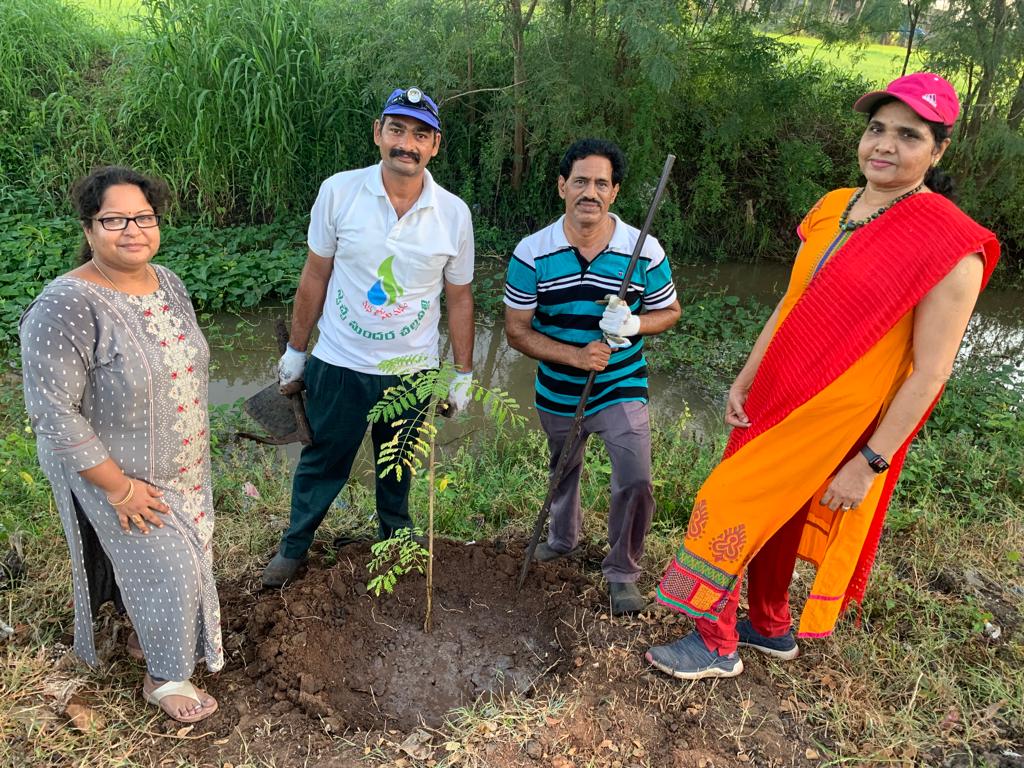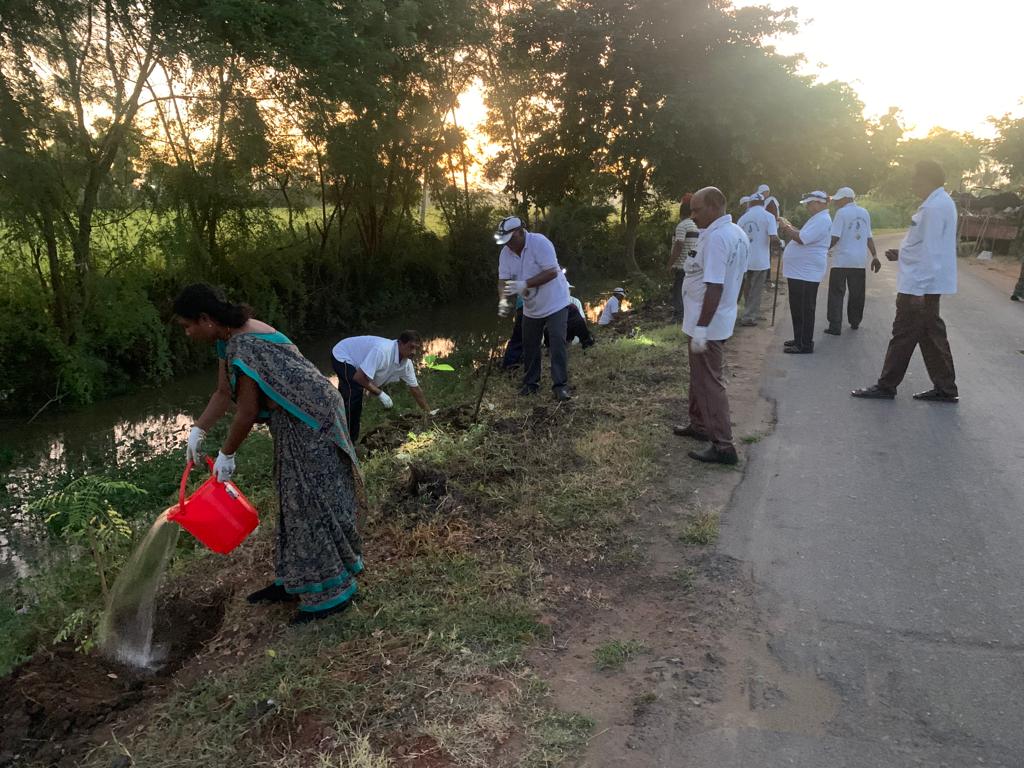 పాగోలు ముఖ ద్వారం దగ్గరి రోడ్డులోనే నేటి వేకువ 4.20 – 6.20 నడుమ యార్లగడ్డ శివప్రసాద్ గారి సకుటుంబ – సపరివారంతో సహా ఇందరు కార్యకర్తల కృషి! 50 కి పైగా మొక్కల్ని నాటి, సుమారు 100 గజల బాట హరిత సౌందర్యాలకు అంకురార్పణ చేశారు.