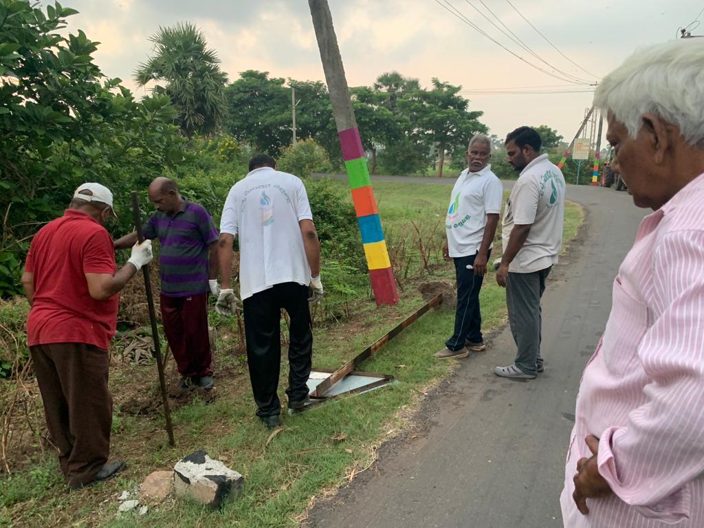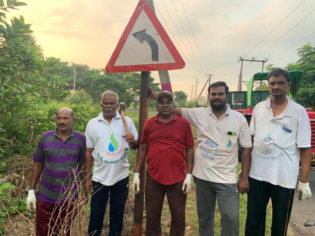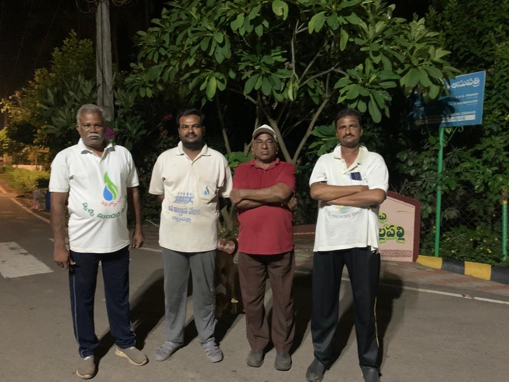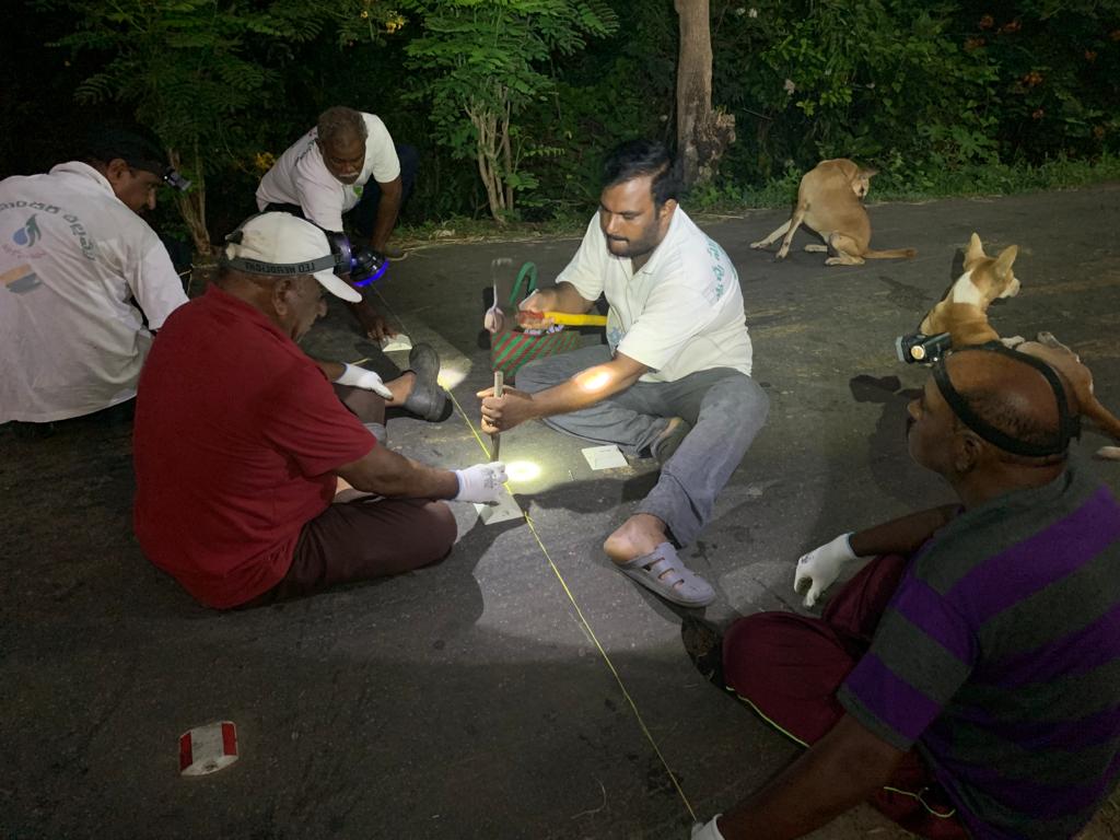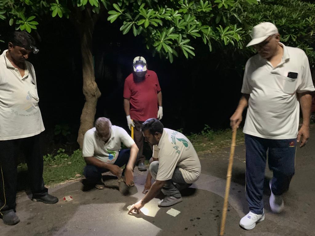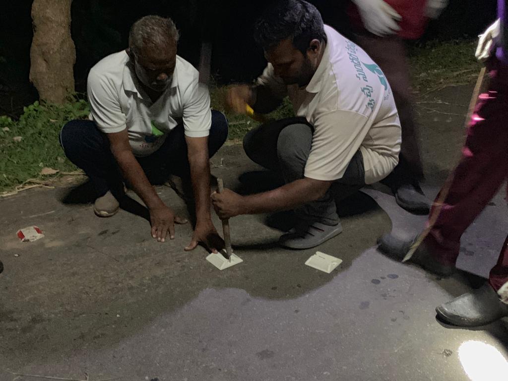 భవఘ్ని నగర్ – బండ్రేవుకోడు మురుగు కాలువల నడుమ ఇటీవల పెట్టిన వేగ నిరోధకాల దగ్గర రాత్రివేళ సరిగ్గా గమనించని ప్రయాణికుల కోసం మిలమిల మెరిసే ‘Cat Eyes’ అమరికే ఈ ఐదారుగురి నేటి ముఖ్య విషయం. మూల మలుపుకు ముందు దాన్ని సూచించే గుర్తును నాటడం ఇంకొక పని!