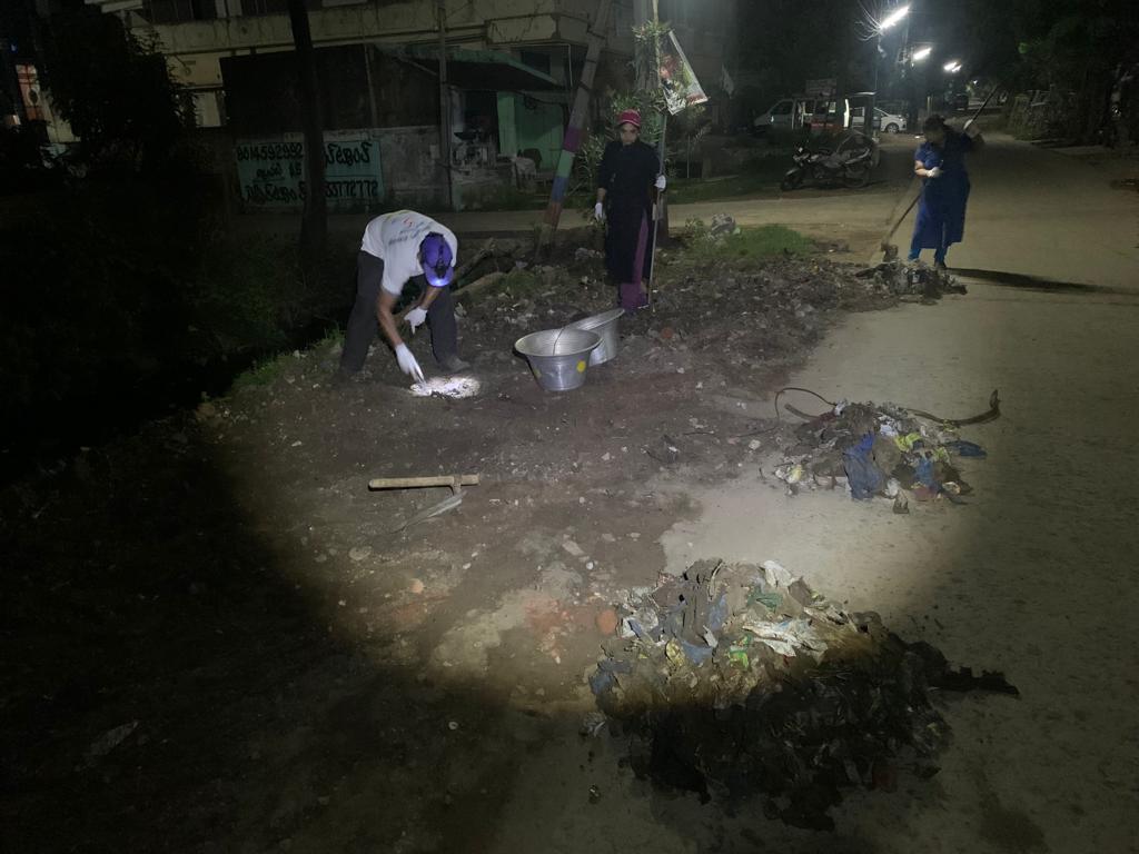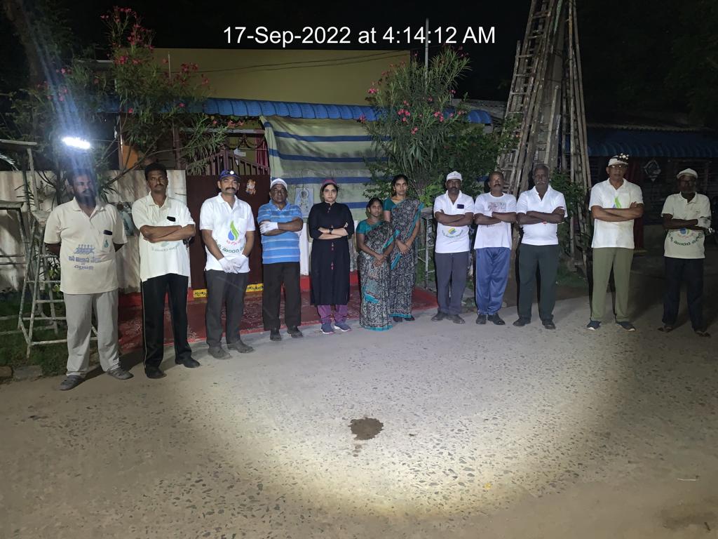17.09.2022 వ వేకువ శ్రమ దాతలు 29 మంది ; వాళ్ల సేవలందుకొన్న చోటు ఉప మార్గము నందలి సినీ ప్రదర్శన శాల దగ్గర ; శుభ్రపడి, అద్దాలుగా మారిన వీధి మార్జిన్లు 2 ; అన్నీ కలిసి వ్యర్థాలు పెద్ద ట్రాక్టరు నిండుగా ; చల్లని వేళే గాని, కార్యకర్తల చెమటలు దండిగా; 4. 14 & 6. 05 నడుమ బాగుపడిన 100 గజాల వీధిని చూసిన శ్రమదాతల సంతృప్తి మాత్రం మెండుగా!
