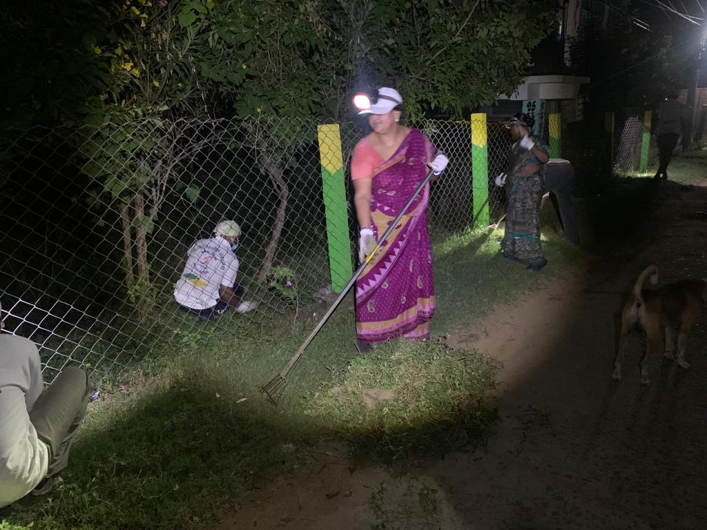 3) 10 మంది కార్యకర్తలు కండలు కరిగేలా- చెమటలు దిగ గారేలా – కత్తులు వాడి చెడు మొక్కల్ని, గడ్డిని తొలగించి రెండు ఉద్యానాలను క్షుణ్ణంగా శుభ్ర పరిచి వదలడం ;
