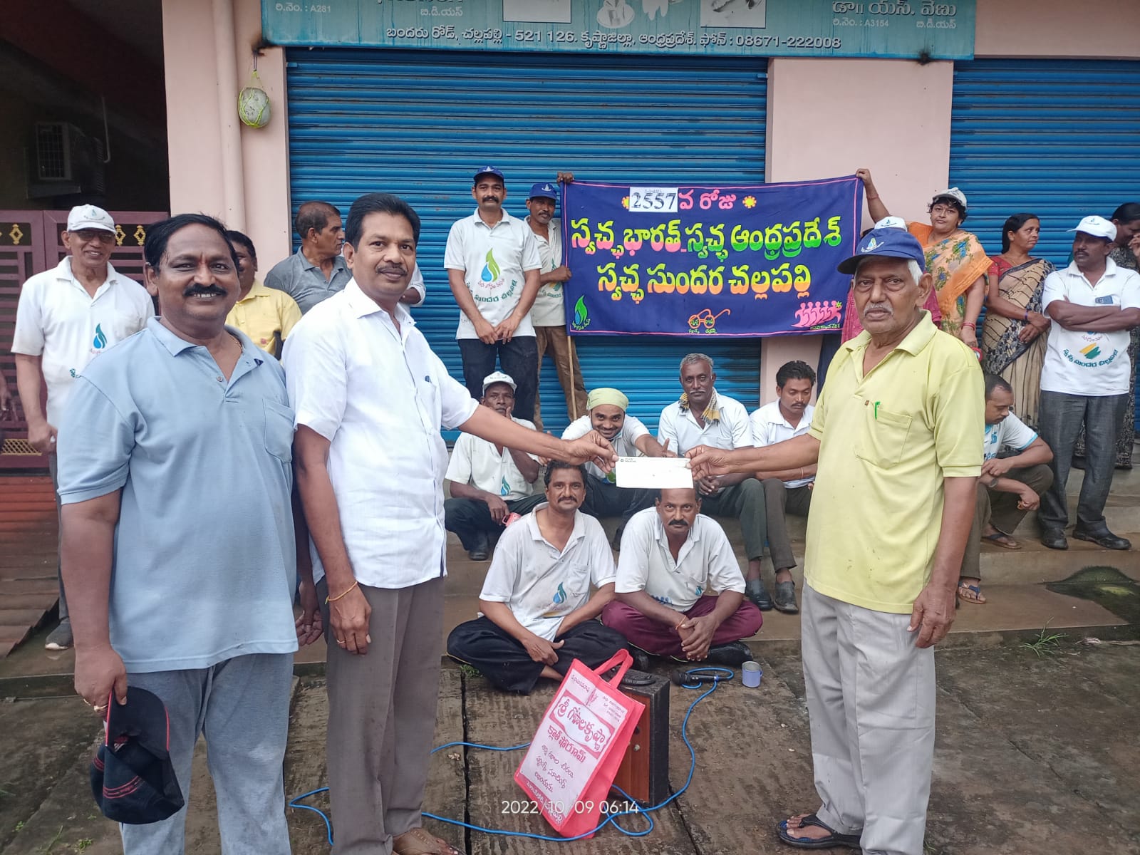 వానలోనే తడుస్తూ వచ్చి, కార్యకర్తల శ్రమ వేడుకను మెచ్చి, వేకువనే లేచి పారిశుద్ధ్య క్సృషిలో పాల్గొన లేని తన అనివార్య అశక్తతకు నొచ్చి- తన తండ్రి (వరదా రామారావు – మాజీ సర్పంచ్ – దాన ధర్మాల్లోనూ సమాజం పట్ల బాధ్యతలోను ఈయనా ఏం తక్కువ తినలేదు-) గారి ద్వితీయ సాంవత్సరీక సందర్భంగా స్వచ్చోద్యమానికి 10,000/- సమర్పించినవారు ‘ మాధవీ షోరూమ్ అధినేత వరదా హర గోపాల్!