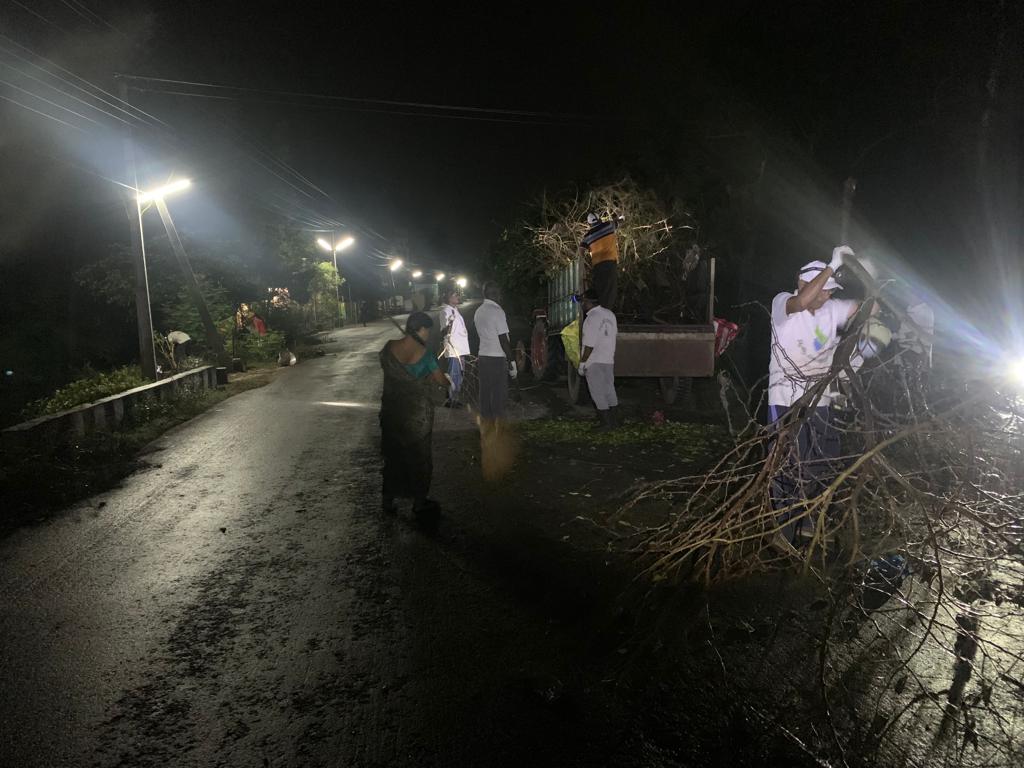 14-10-22 ఉదయాన స్వచ్ఛ కార్యకర్తలతో వరుణుడు కూడ జతకట్టాడు. అసలే పని జరుగుతున్నది – నిన్న బ్లీచింగ్ చల్లినా కంపు కొటుతున్న బండ్రేవు కోడు వంతెన దగ్గరి చిన్నపాటి చెత్త కేంద్రాలు; నిన్న వాన తగ్గినా తడిపొడిగానే ఉన్న నాగాయలంక రహదారి ప్రాంతం.
