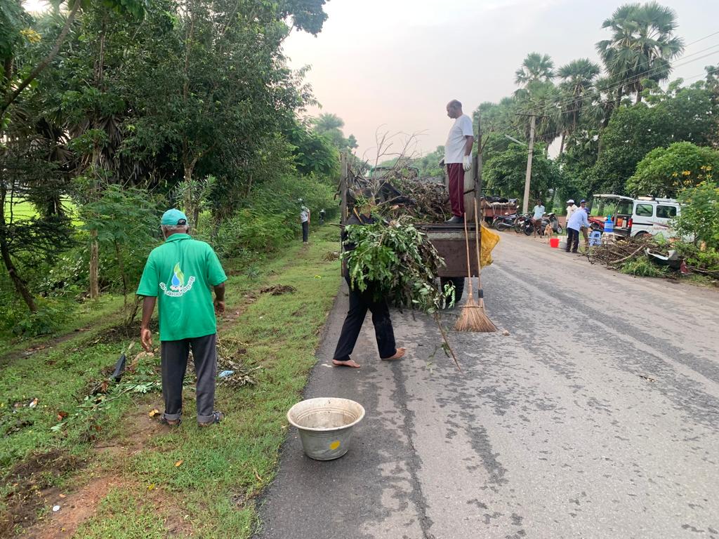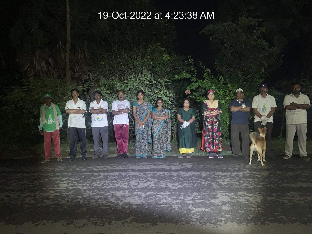 బుధవారం (19.1022) వేకువ కూడ ఇంచుమించు నిన్నటి శ్రమదాన దృశ్యాలే! ఏడేళ్లకు పైగా స్వచ్చ - పరిశుభ్ర - సుందరంగా, హరిత వైభవంగా, రంగురంగుల పూల సొగసులతో ఉన్న ఈ రహదారి భాగం మీద కొందరు గ్రామస్తుల, ప్రయాణికుల కశ్మల దాష్టీకం ఆగదు, దీనితో సహా 7 రహదార్ల స్వచ్చతకు కట్టుబడ్డ ఈ పాతిక - ముప్పై – నలభై మంది శ్రమ వీరుల ప్రయత్నమూ నిలిచిపోదు!