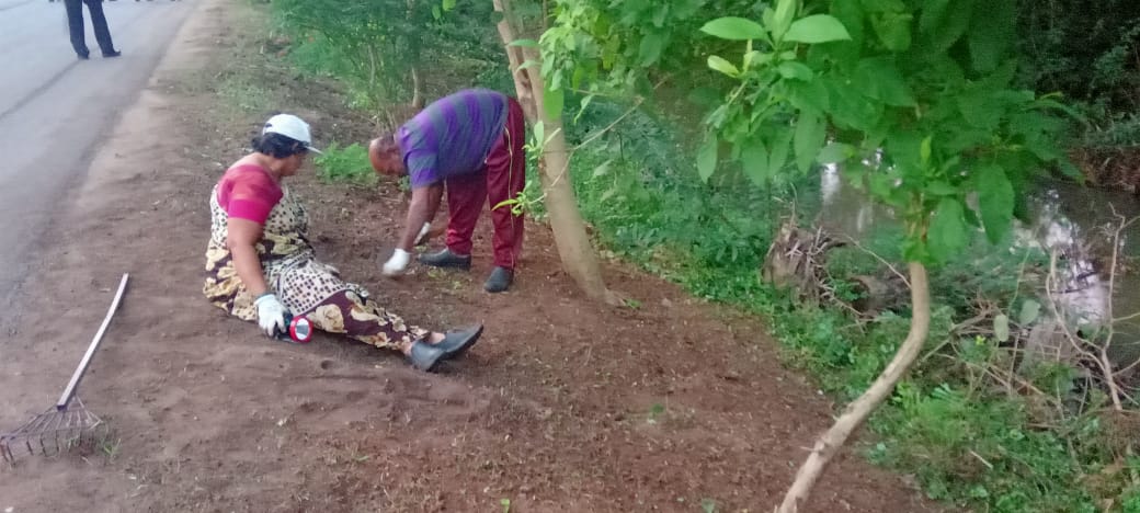 అదేం చిత్రమో - ఎక్కడి నుండి వచ్చి పడ్డవో గాని – 3 రోజుల్నాడు శుభ్రపరచిన రహదారి తూర్పు ప్రక్కన నాలుగు డిప్పల ప్లాస్టిక్, తదితర వ్యర్ధాలు చేరితే – గ్రామ సర్పంచితో బాటు కొందరు వంగి శుభ్రపరిచారు.