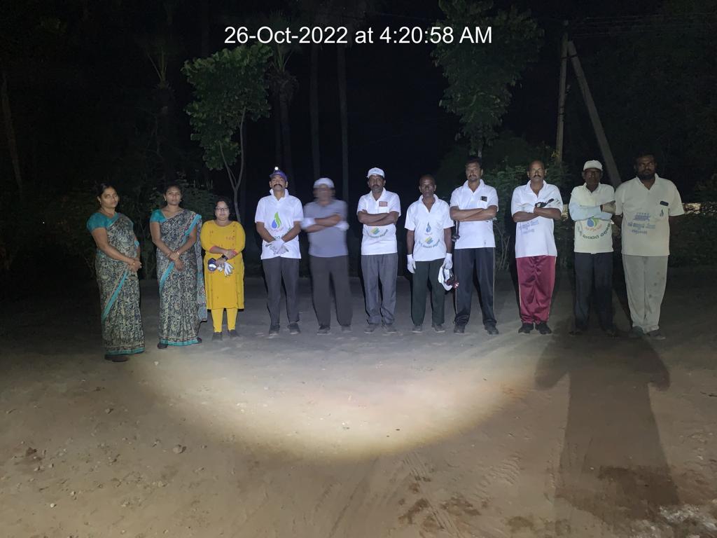 ఒక ప్రక్క చలి తీవరిస్తున్న (బుధవారం - 26-10-22) వేళ – బ్రహ్మ ముహూర్తం - 4.20 సమయాన - అమరస్థూపం సాక్షిగా – తమ గ్రామ సామాజిక, బాధ్యతకు పూనుకొన్నది డజను మంది! క్షణక్షణ ప్రవర్ధమై వాళ్ల బలం నాలుగు రెట్లు (47 మంది) పెరిగింది అందులో – 7 గురు వక్కలగడ్డ, పమిడిముక్కల మూలాల వారు మన స్వచ్ఛ – సుందరోద్యమానికి అతిధి దేవోభవులు!