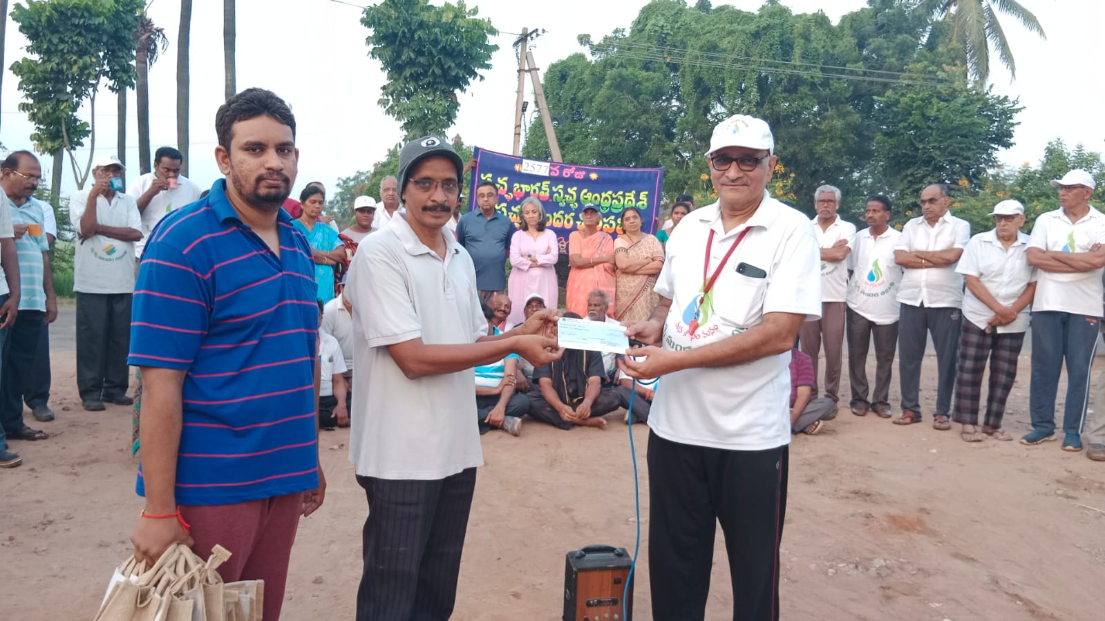 6) చాల కాలం స్వచ్చోద్యమ కారిణీ, దురదృష్టవశాత్తూ సంవత్సరం క్రితం మృతురాలూ ఐన నారంసెట్టి విజయమ్మ జ్ఞాపకార్థం ఆమె పెనిమిటీ, తనయుడూ స్వచ్చోద్యమానికి 10,000/- చెక్కునూ, కార్యకర్తలకు తలొక చేసంచీ - తేనె సీసా పంచడం;