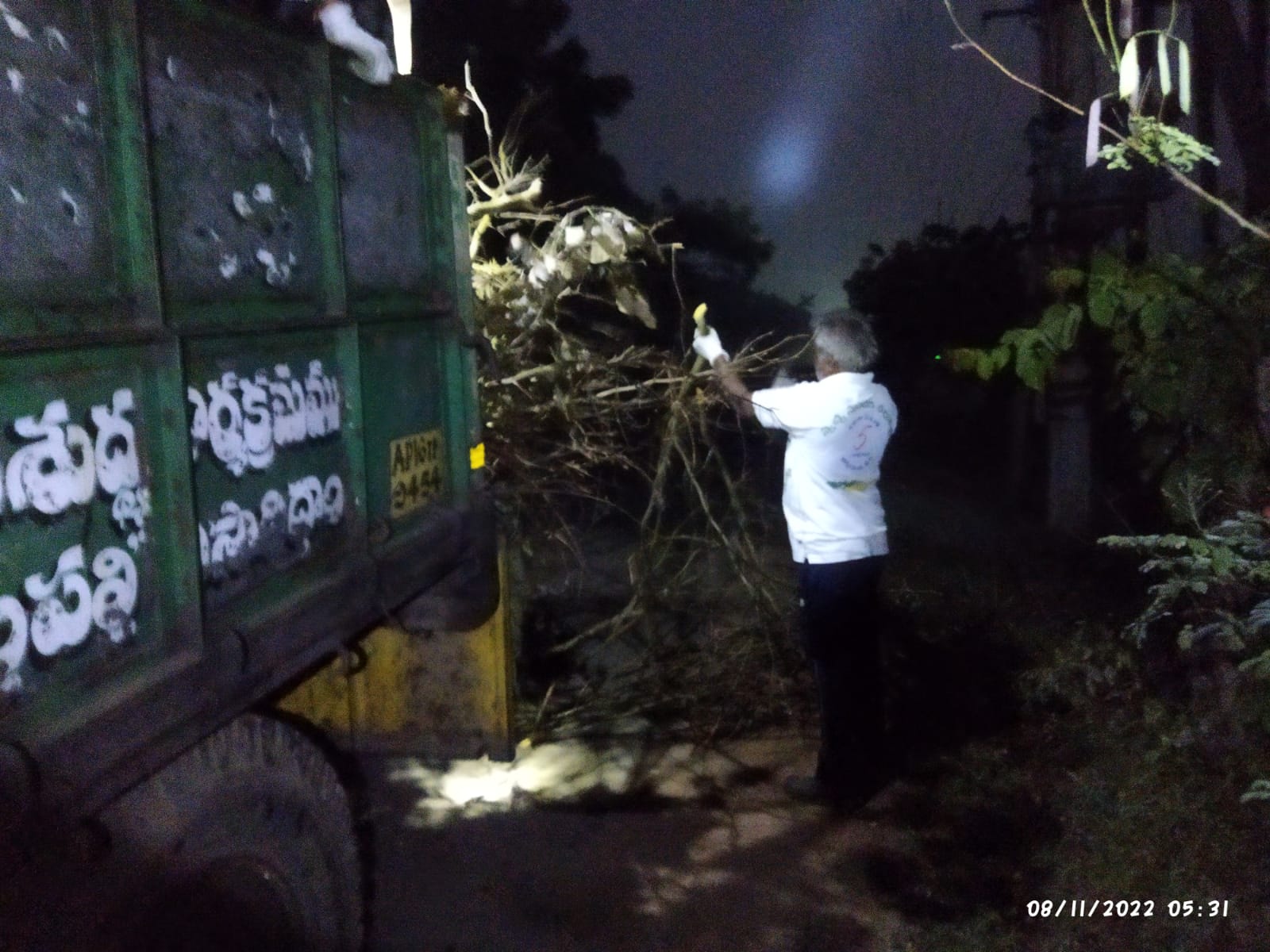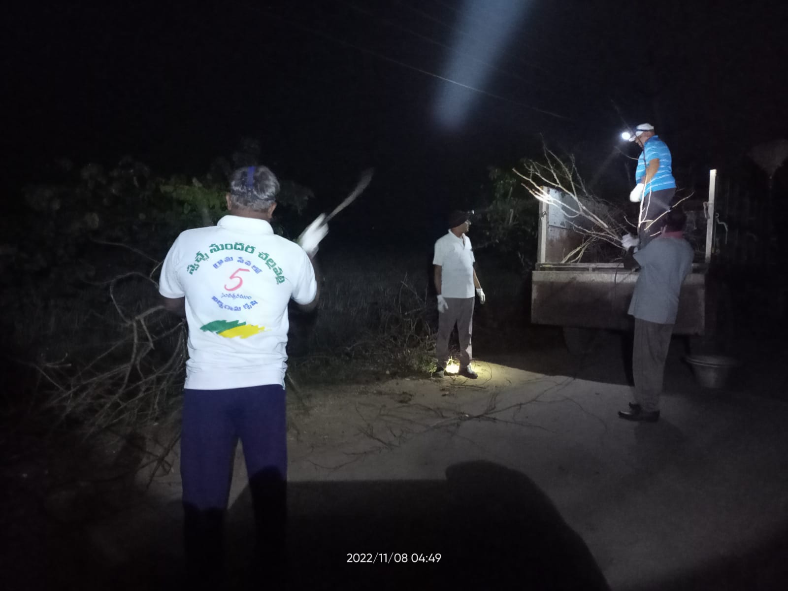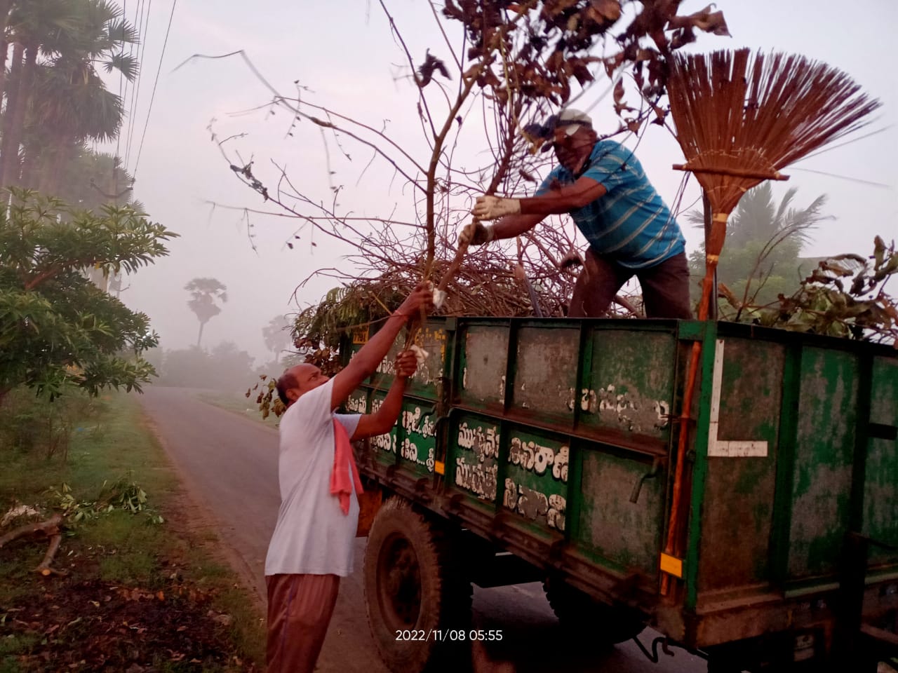 విద్యుత్ శాఖ వారి ఖండనంతో బాట ప్రక్కన చిందరవందరగా పడిన - ఐదు రోజులు కార్యకర్తలు తొలగించిన కొమ్మలు, దుంగలు పోను ఎండి, చలికాలం పొయ్యిలోకి పనికొచ్చే ఎండు కట్టెల గుట్టలు ఈ ఉదయం మరొక ట్రాక్టరుకు సరిపడా ఏరి, సర్ది వేరొక చోటికి చేర్చడమే నేటి పని కూడా!