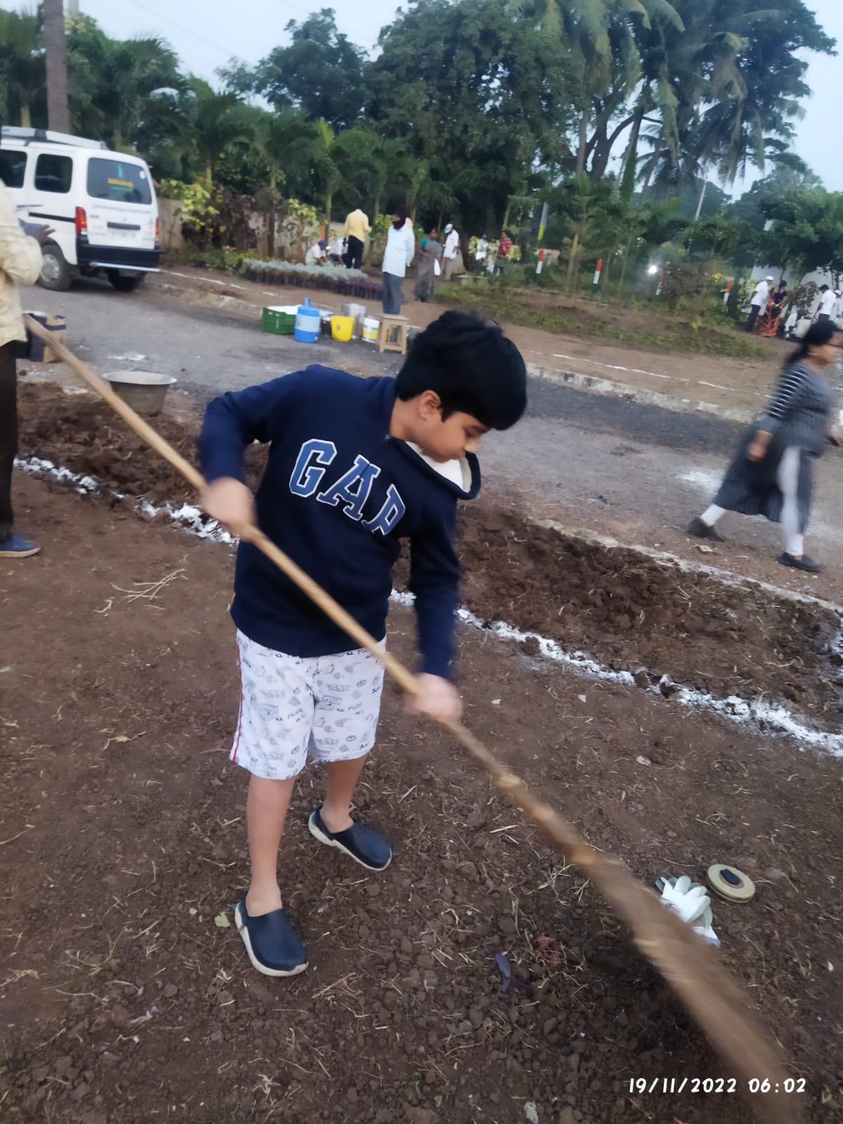 శనివారం (19-11-22) వేకువ సైతం 4.20 కే ఊరి మెరుగుదల పనులు మొదలై – 6.10 దాక అవిరళంగా జరిగాయి! స్థలం మాత్రం పాగోలుకు బదులు బెజవాడ రహదారిలో గాంధీ స్మృతి వనం. పనేమో కుడి – ఎడమల మొక్కల పెంపకానికి ఎదురు చూస్తున్న జాగాలు! వ్యక్తులేమో - వేమన కవి చెప్పినట్లు – ‘గంగిగోవు పాల’ లాంటి, పురుషులందు ‘పుణ్యపురుషు’ ల్లాంటి 41 మంది!