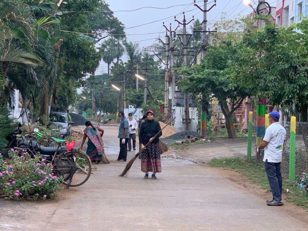 ఈ ఉదయం తక్కువ కార్యకర్తలు - ఎక్కువ పని అన్నట్లున్న వీధి సుందరీకరణంలో :