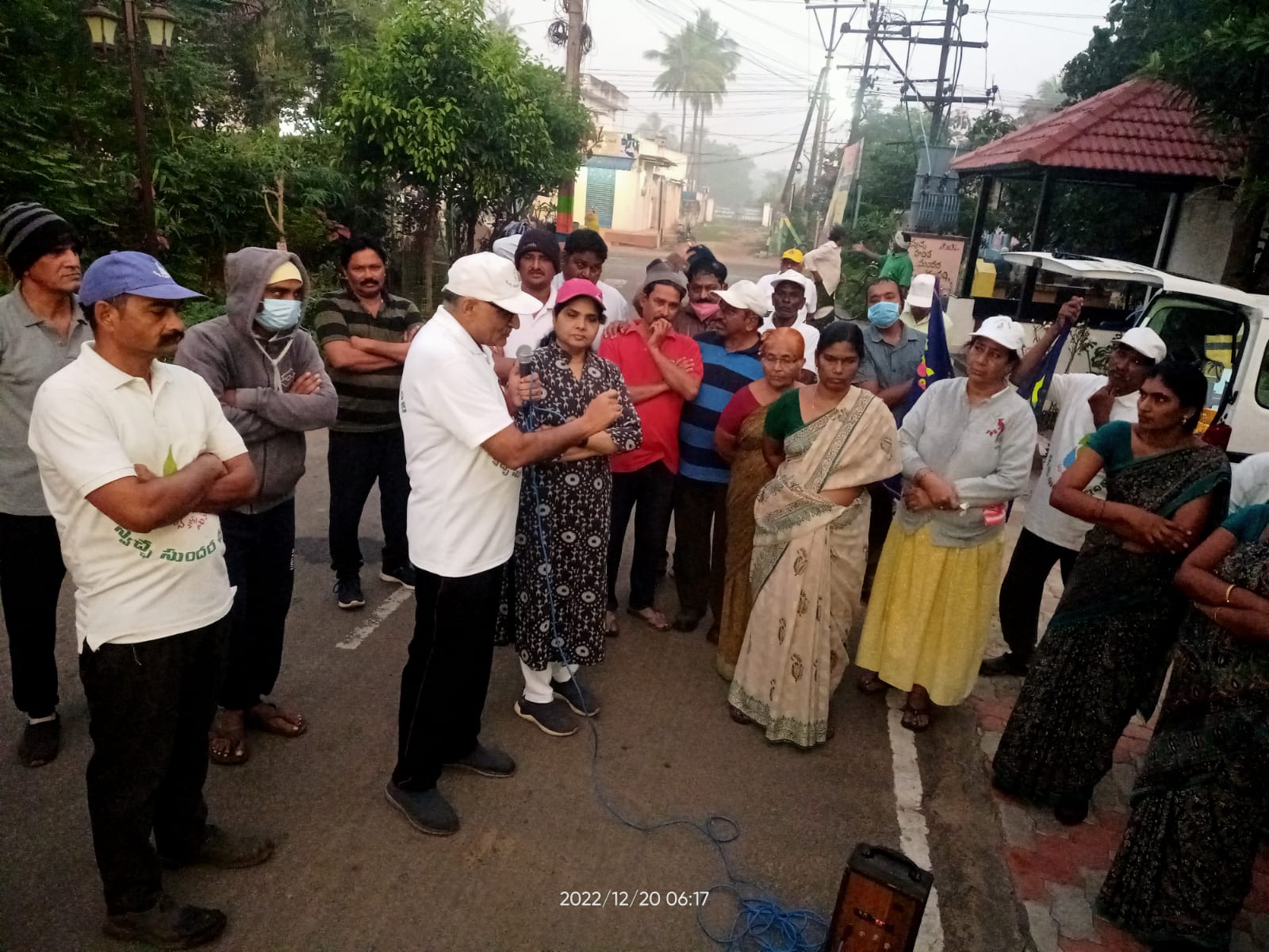 సదరు మనః పూర్వక ప్రయత్నం మంగళవారం (20.12.2022) నాటిది! ఆ పూనిక 25+5 మందిది! స్థలం గంగులవారిపాలెం గస్తీ గది మొదలు మునసబు వీధి దాక! 6 వ నంబరు కాలువ వంతెన ఉత్తర – దక్షిణ భాగాల సుందరీకరణం దాని కదనం! ప్రేక్షకులు వందల మంది- మొహమాట పడైనా పాల్గొన్న క్రొత్త వారు సున్నామంది! చివర్లో ఉద్యమాభిమానులు ఐదారుగురి అతిథి పాత్ర! - ఇదీ, ఈ వేకువ వీధి పారిశుద్ధ్య ప్రగతి నివేదిక!