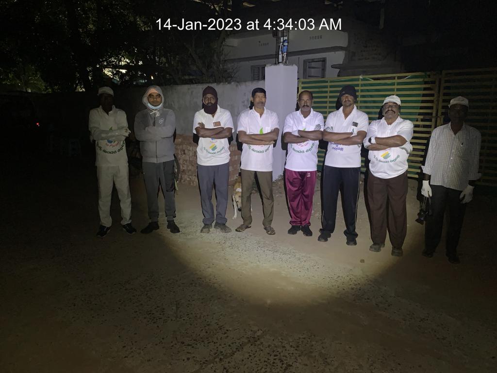 పండుగ వేడుక కన్న ముందుగా దైనందిన సుప్రభాత శ్రమదాన వేడుకను చెప్పుకొందాం. ఆ వేడుకను 4.35 కే ప్రారంభించిన డజను మందీ, నిముషాల క్రమంలో వచ్చి, చీపురు గొర్రు కత్తి - డిప్ప - చేతులకు తొడుగులూ ధరించి, “సంక్రాంతి పండగ రోజైనా సరే! తగ్గేదేలేఅని వీధి పారిశుద్ధ్యానికి దిగింది మరో 18 మందీ!