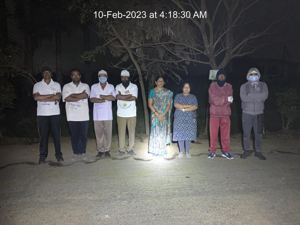 ఆనవాయితీగా నిర్ణీత స్థలానికి చేరుకొని, అనుకొన్న వేళకు ముందుగానే అంటే నేటి (10.02.2023) వేకువ 4.17 కే తొమ్మిది మంది కార్యకర్తలు కళ్లేపల్లి బాటలో బోణీ కొట్టారు! రోజుకొక గంట శ్రమ సమర్పణం అనే నియమం ఎప్పుడో దాటి పోయి, 6.16 దాక అంటే 2 గంటల తమ సమయాన్నీ, శ్రమనూ, విచక్షణనూ, మొత్తం 24 మంది ఇంచుమించు 40 కి పైగా పని గంటల వ్యవధిని మనస్ఫూర్తిగా ఈ రహదారి మెరుగుదలకు వెచ్చించారు!