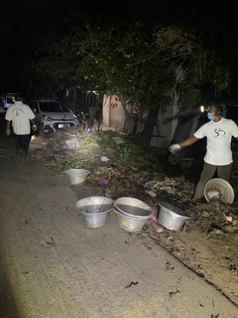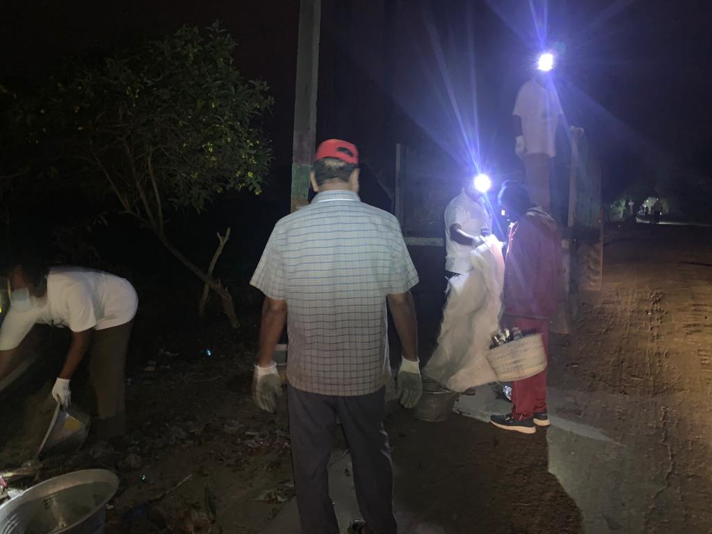 - ఏడెనిమిది మంది పనిమంతులు ఒక ప్రక్క తుక్కుల్ని ట్రాక్టర్ లోకి నింపుతూనే గోనె సంచీడు ప్లాస్టిక్ వ్యర్థాల్ని సమీకరించారు!