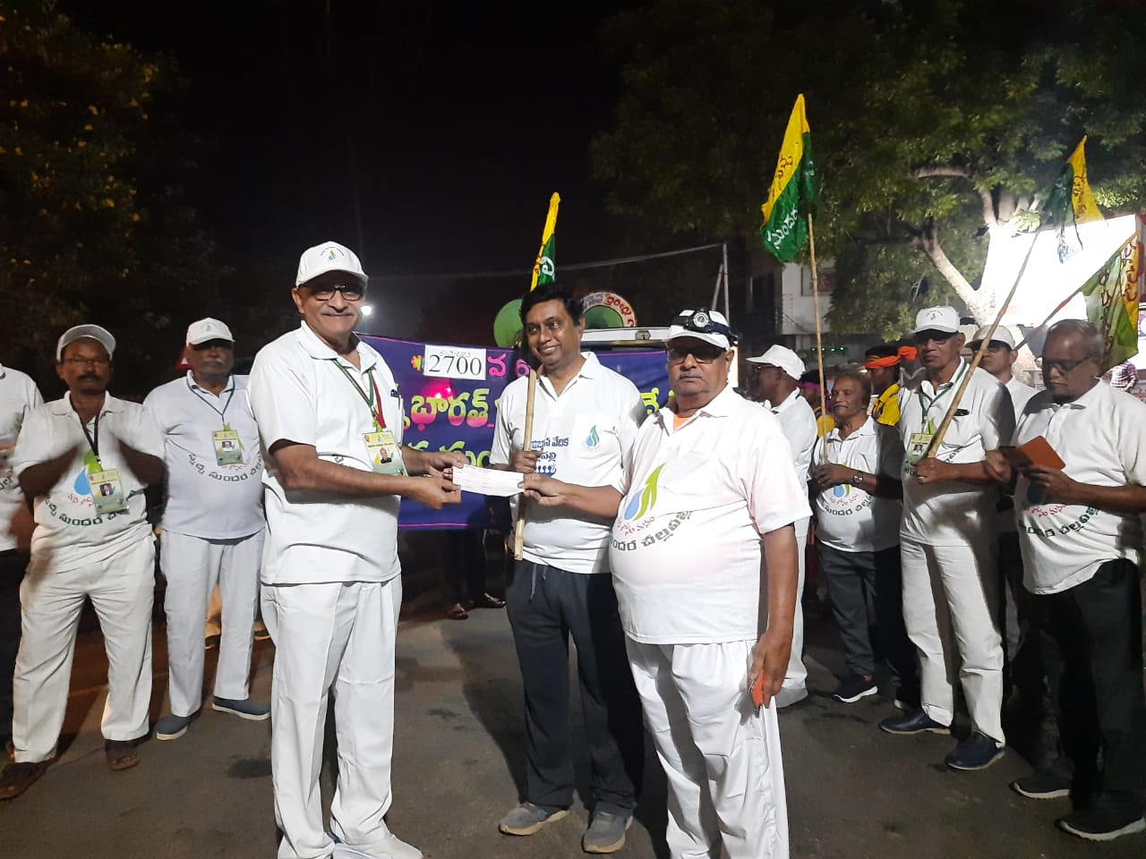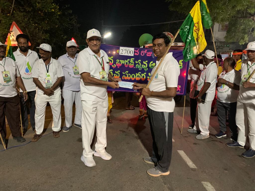 120 మందితో గస్తీ గది నుండి ప్రారంభమైన కార్యకర్తల ప్రవాహంలో అక్కడక్కడా కొన్ని ఉపనదులు వచ్చి కలిసి చివరికి 193 మందితో మహా నదిగా మారింది. ఆ జీవ నది మునసబు వీధి లోనికీ, పోలీస్ స్టేషన్ ముందుకూ, సాగర్ టాకీస్ దగ్గరా మలుపులు తిరిగి, బెజవాడ దారిలో కాసేపు ఆగి, ఉదయ శంకర శాస్త్రి చేతులతో జాతిపిత స్మృతివనం పునః ప్రారంభం జరిగి, బందరు రహదారిలో స్వచ్చ సుందర టాయిలెట్ల ఆవిష్కరణం దగ్గర తాత్కాలిక విరామంతో 7.20 కి పద్మాభిరామంలోకి సంగమించింది!