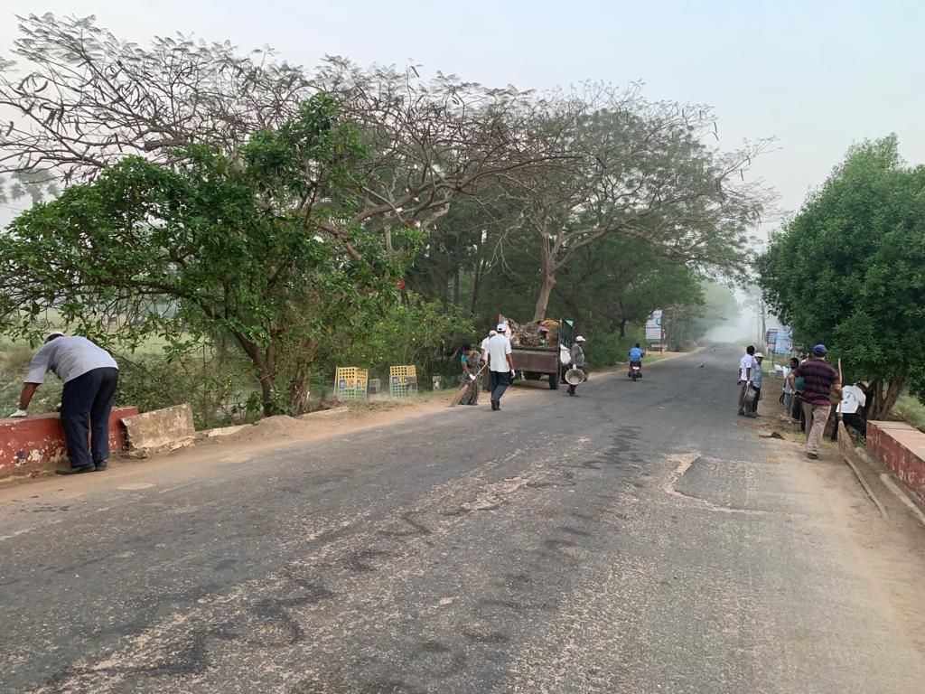 6) వంతెన మీది చెత్తను, దుమ్మును ఒకటికి రెండు మార్లు ఊడ్చి, మట్టి పెచ్చుల్ని గోకి, గడ్డి మొక్కల్నీ, ప్లాస్టిక్ తుక్కుల్నీ రాచి రంపాన పెట్టి, అరగంటలో దాన్ని కనువిందుగా మార్చిన నలుగురి పట్టుదలా! (వాహన వేగాలు ఎప్పుడు ప్రామాదికమౌతాయో అని మాలో ఒకరిద్దరి బెంగ!)