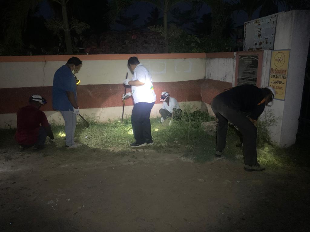 - లోతైన డ్రైనులోని పుల్లా-పుడకా - ఆకులలములూ-ప్లాస్టిక్ తుక్కులూ తలదీపాల వెలుగులో ఊడ్చి- డిప్పల కెత్తి ట్రక్కులో నింపడమూ !