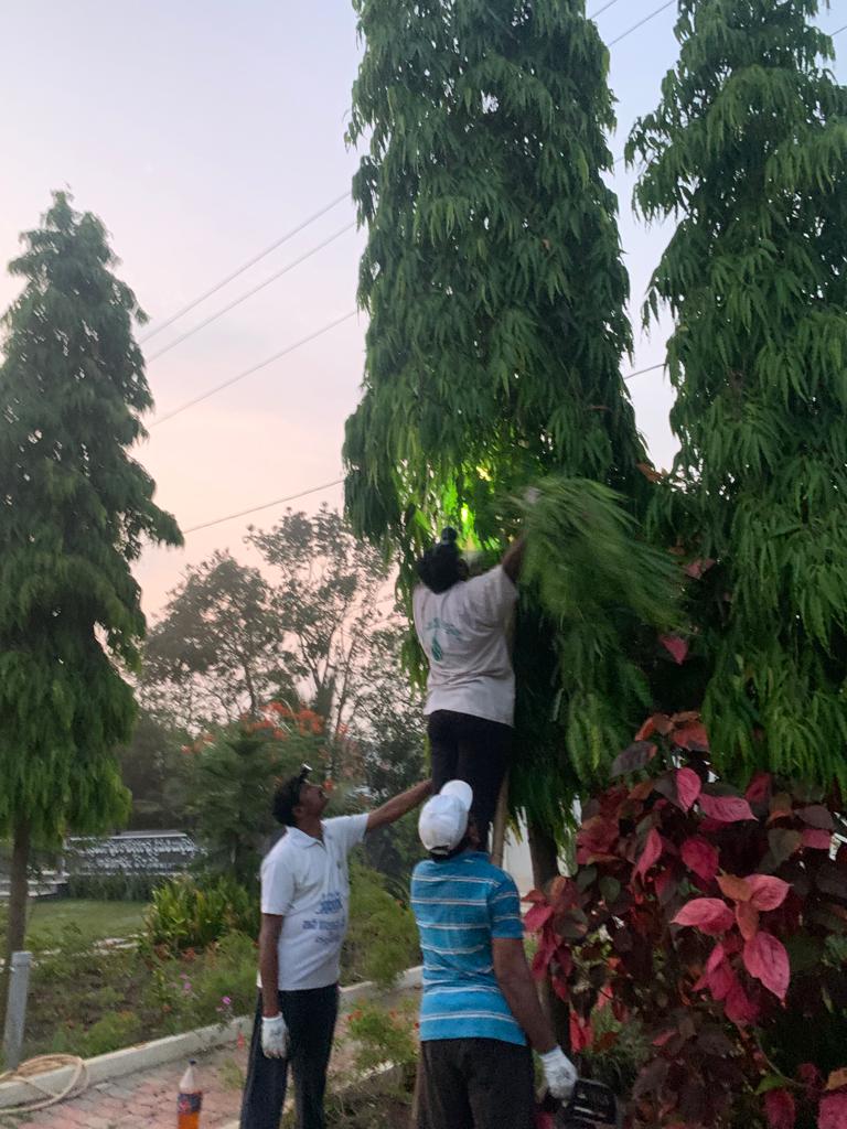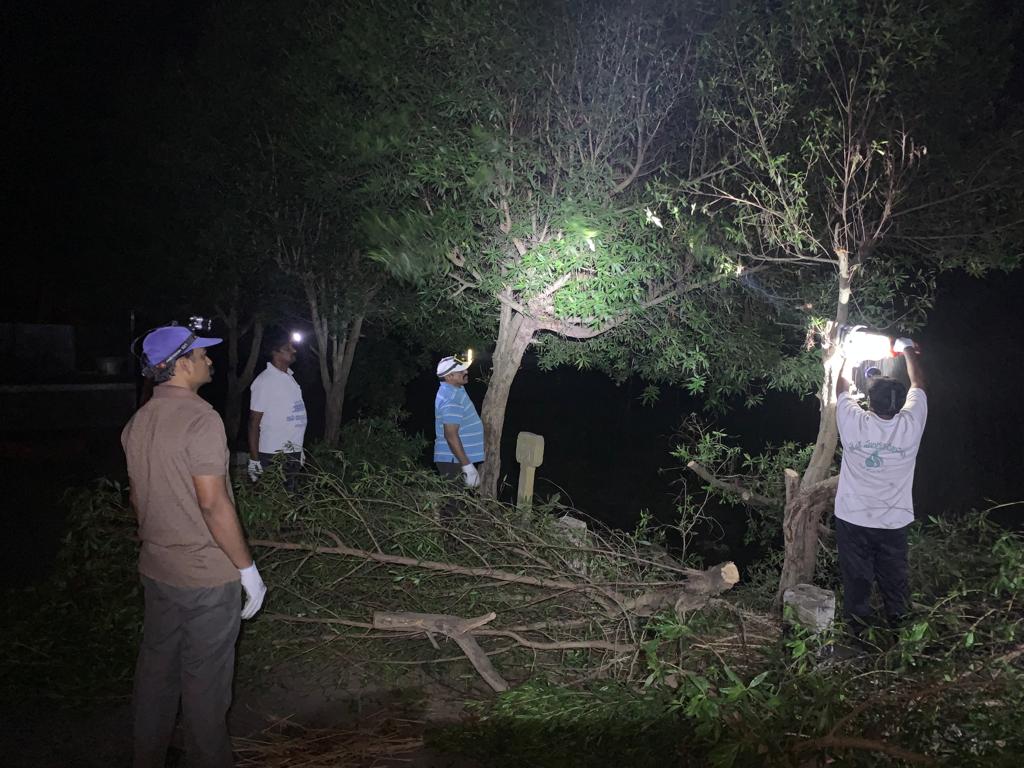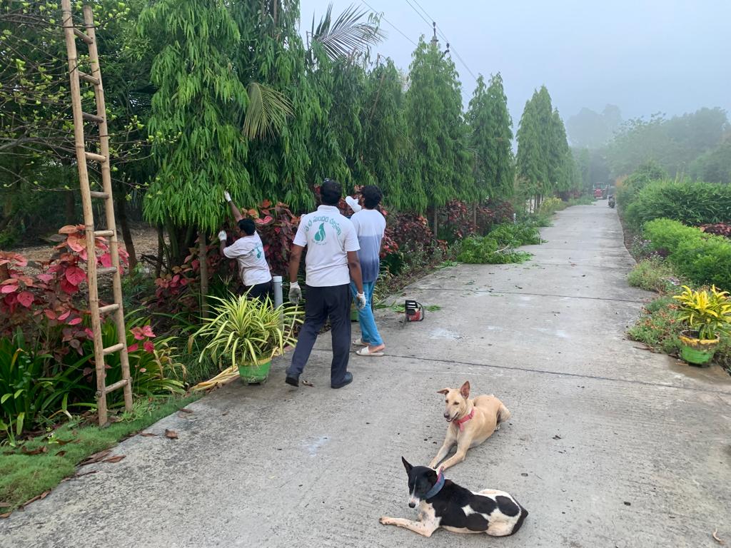 ఇద్దరు బడి పంతుళ్లు, ఒకవ్యాపారి, ఒక ITC ఉద్యోగితో సహా - ఏడెనిమిది మందికి పెట్రోలు బంకు మిల్లు నడిమి మురుగు కాల్వనూ - JCB చుట్టూ దట్టంగా పెరిగిన పిచ్చి కంపనూ రకరకాల తుక్కునూ ఊడ్చి, పరిశుభ్ర పరిచి, పీకి - లాగి, గుట్టలు చేయడానికే గంట సమయం పట్టింది!
