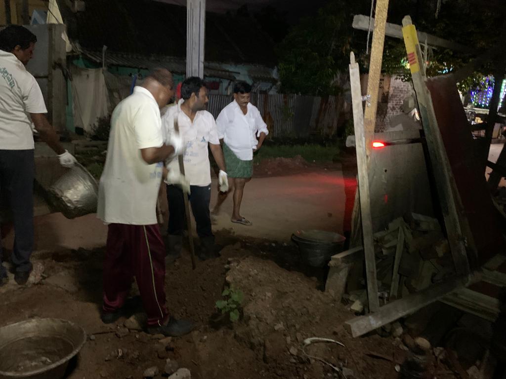 నలుగురు బందరు బాటలోని ఎండిన మురుగు మట్టి ఎన్ని ట్రక్కులెత్తి వచ్చారో తెలియదు గాని, 5.30 కు వాళ్లు బైపాస్ వీధిలో కార్యకర్తల కత్తులకూ, దంతెలకూ, చీపుళ్లకూ బలై పడి ఉన్న గుట్టల్నెత్తి ట్రాక్టర్ నింపారు.