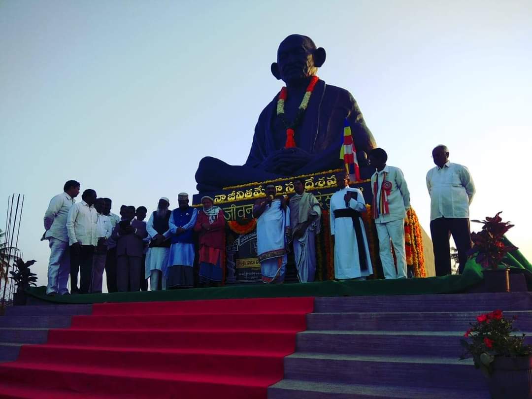 దారిలో గాంధీగారి విగ్రహానికి డా.పద్మావతి గారు పూలు సమర్పించారు.